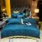 ab家纺 2021新款40s全棉刺绣四件套月光蓝