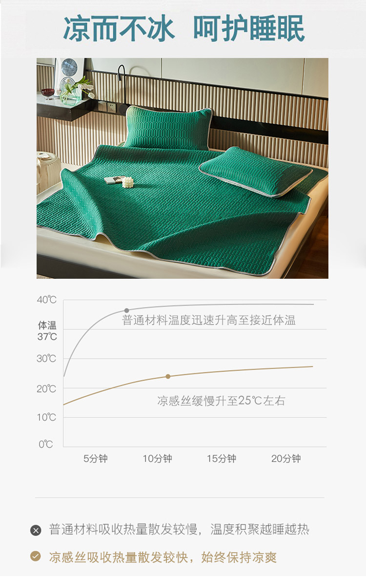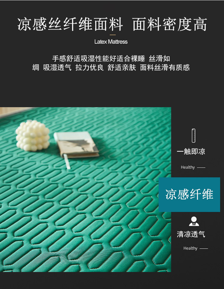 商品名称:凡客家居2021春夏凉感丝纯色乳胶凉席 哈伦(孔雀绿)