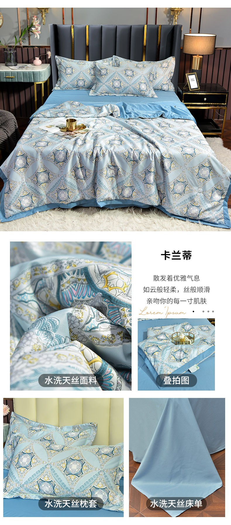 (总)梦柏 2022新款水洗天丝夏被四件套,爱马,暗香,初夏,春日,都市格调(桔),都市格调(兰),法兰西,繁花,梵客绿,芳华,格调,格韵,乖乖熊,悍马,花恋,假日,卡兰蒂,凯利(蓝),凯利(绿),可爱鹿,罗马,罗曼,曼哈顿,晴朗,秋暮悠然(绿),时尚兔,似水流年,童心,王家风范,文颜(粉),文颜(红),向日葵,小萌兔,幽雅密,月亮猫,字母D,字母T,字母象(灰),字母象(浅咖)