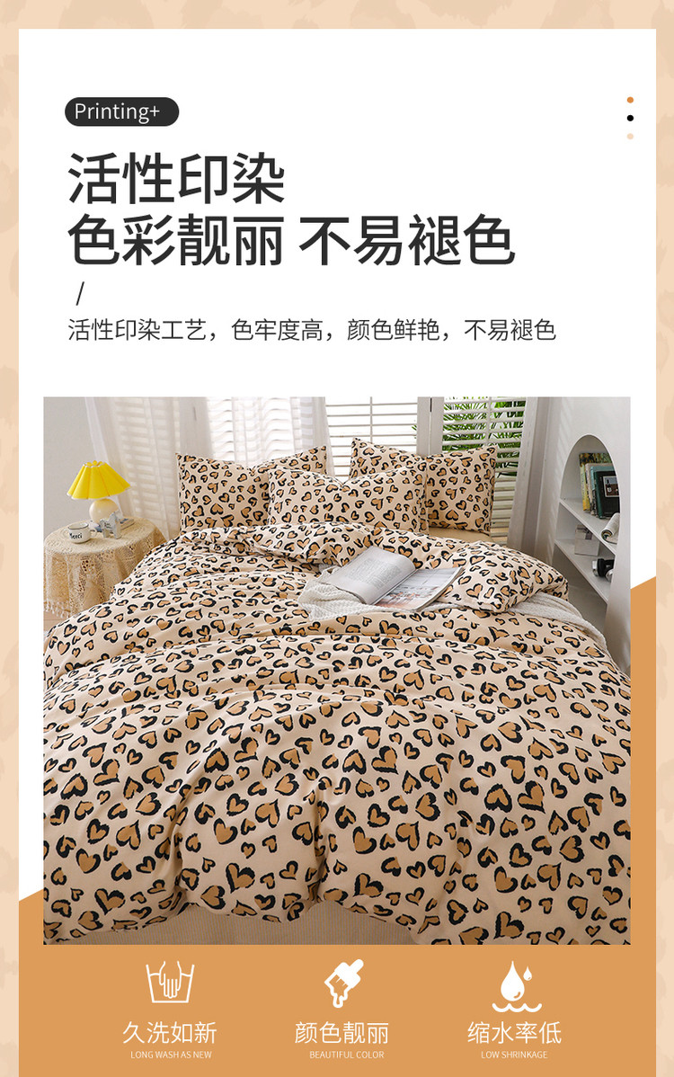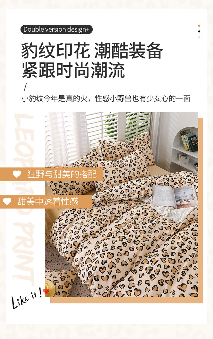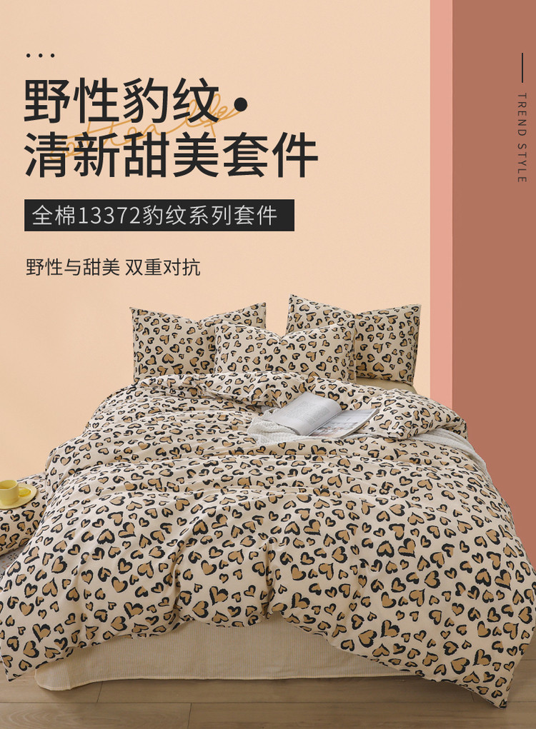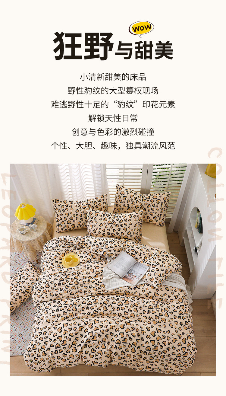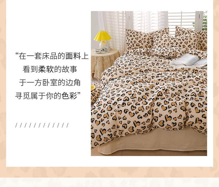 优彩 2021新款全棉13372豹纹系列四件套 爱心豹纹-黄