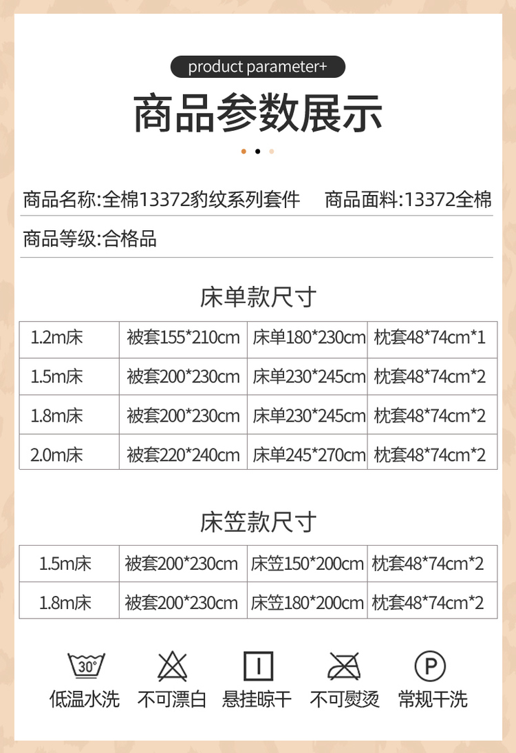 商品名称:优彩 2021新款全棉13372豹纹系列四件套 爱心豹纹-黄