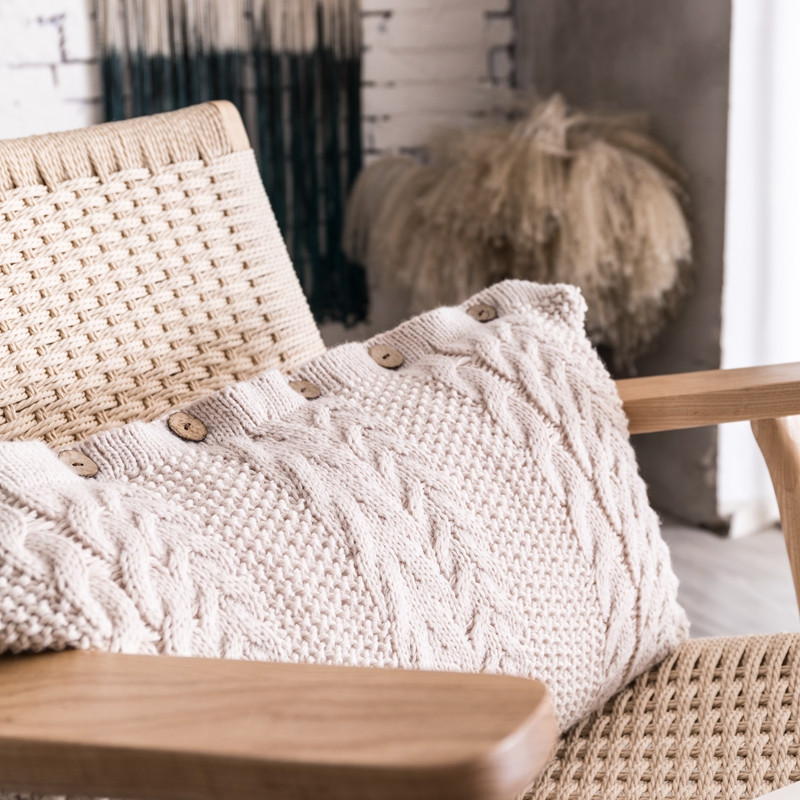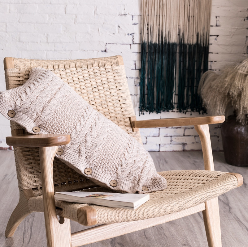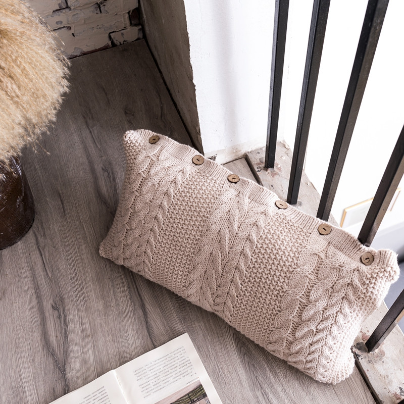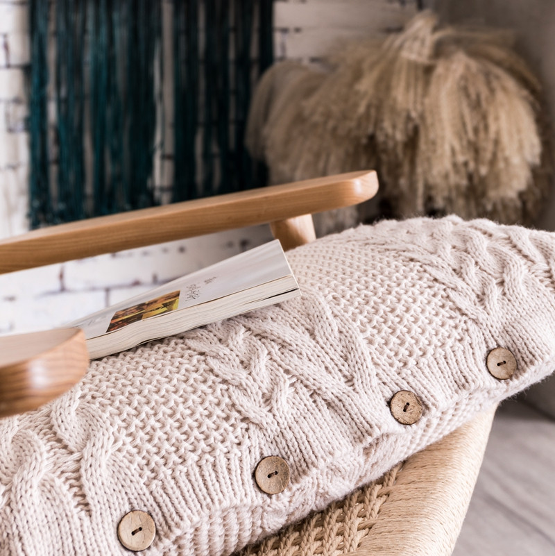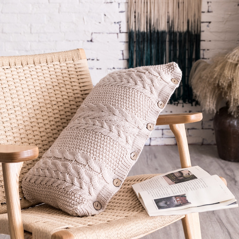 918拾朵家居 2021新款粗针麻花长腰枕 米白