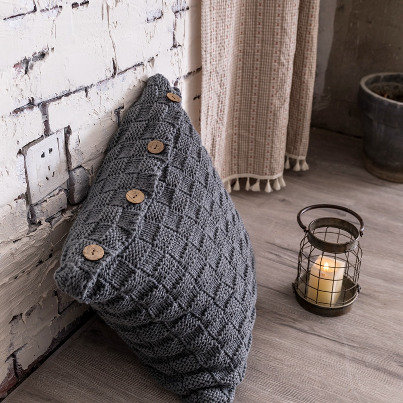 918拾朵家居 2021新款立体方格抱枕 灰色
