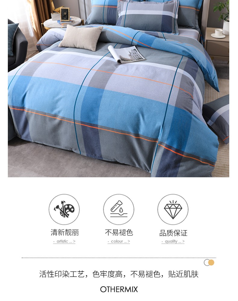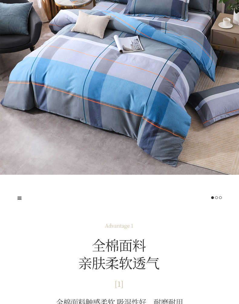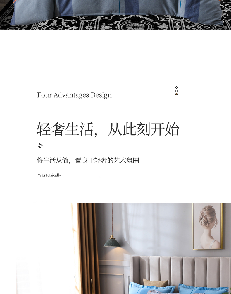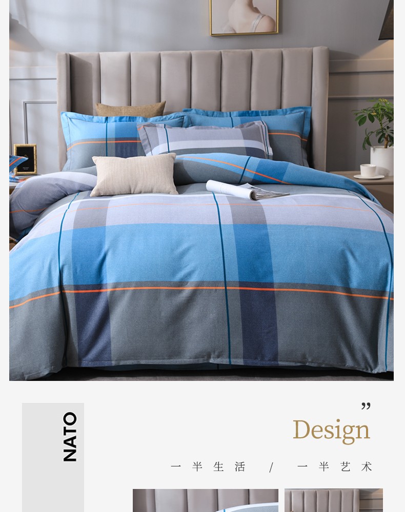 商品名称:金纱玉纺 2022新款全棉磨毛四件套 艺术空间-蓝
