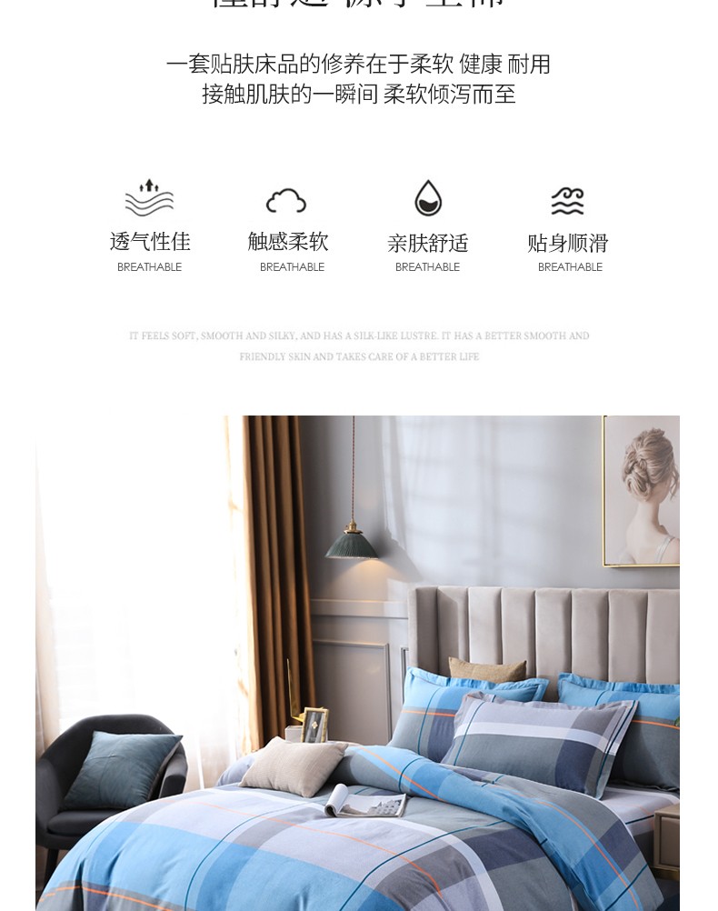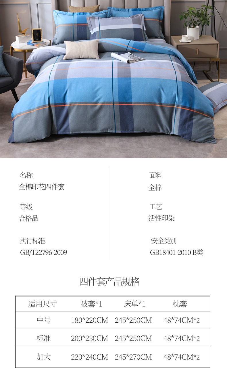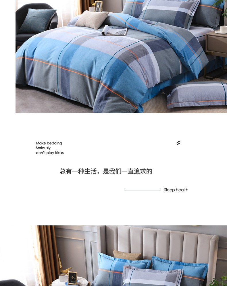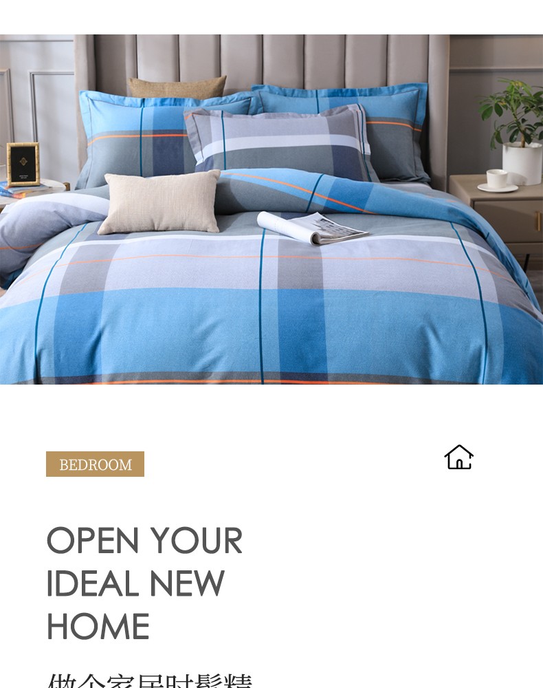 商品名称:金纱玉纺 2022新款全棉磨毛四件套 艺术空间-蓝
