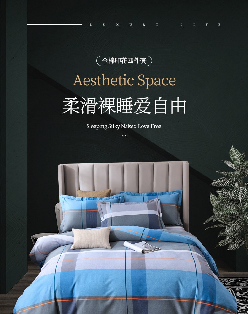金纱玉纺 2022新款全棉磨毛四件套 艺术空间-蓝