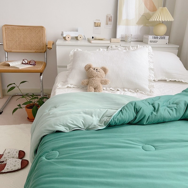 商品名称:星期八 2021新款马卡龙大豆针织春秋被冬被 深绿浅绿