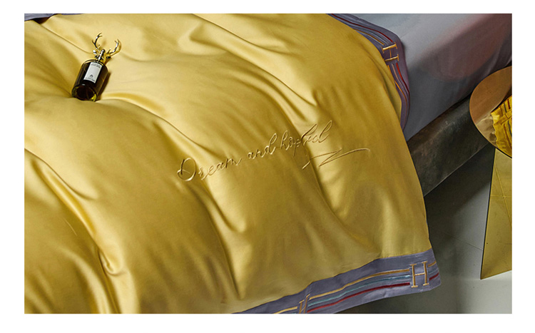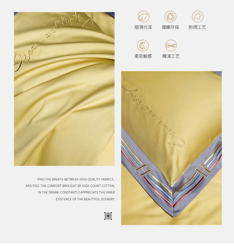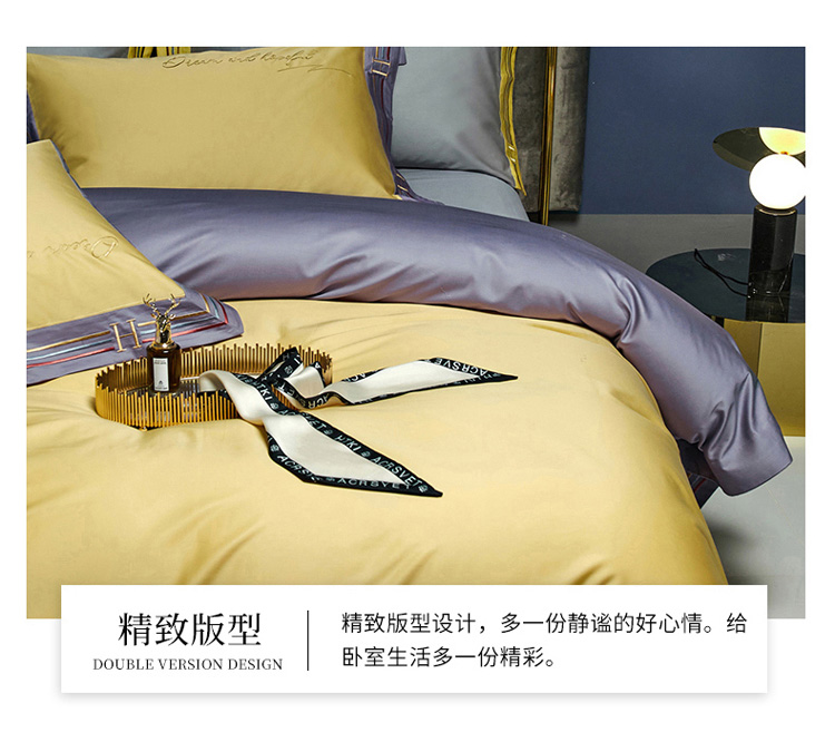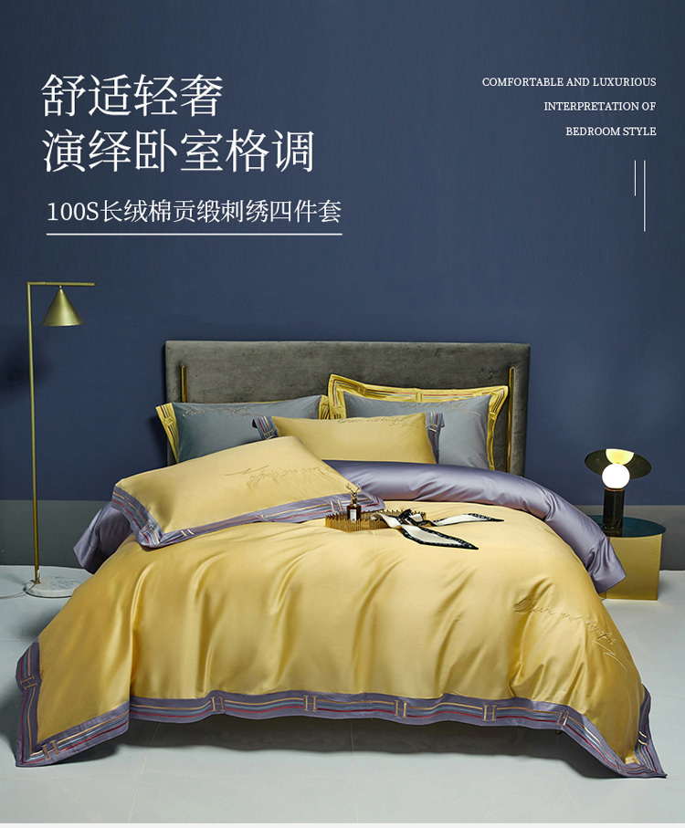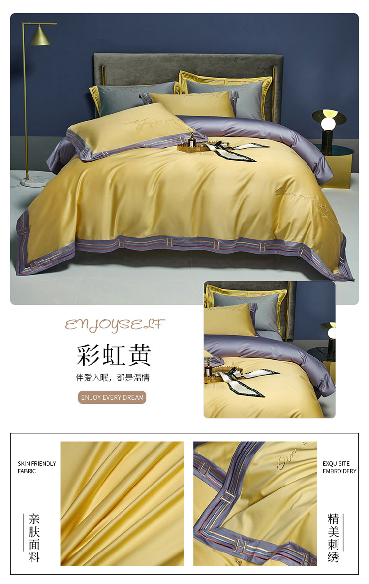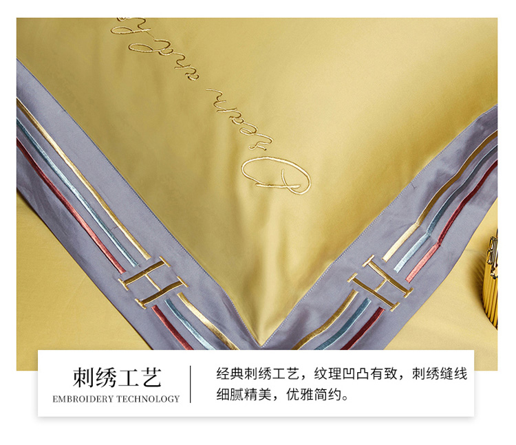 爱缦 2021新款100S长绒棉贡缎刺绣四件套罗曼尼 彩虹黄