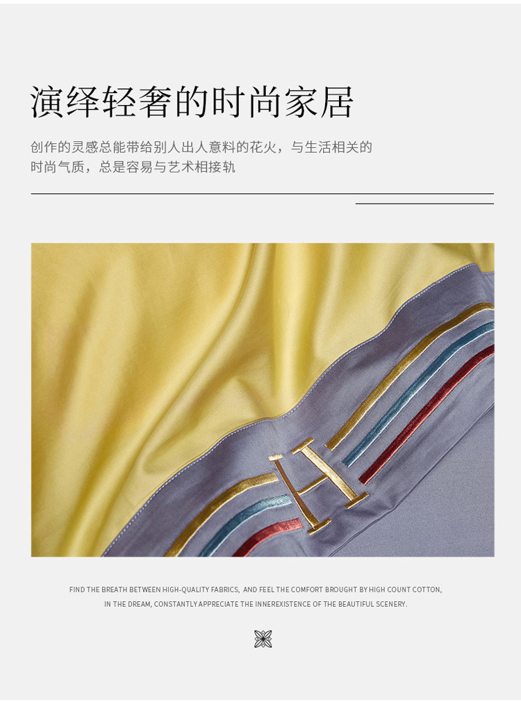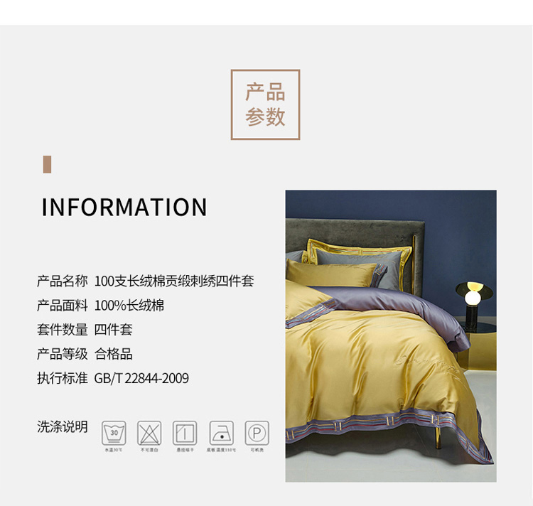 商品名称:爱缦 2021新款100S长绒棉贡缎刺绣四件套罗曼尼 彩虹黄
