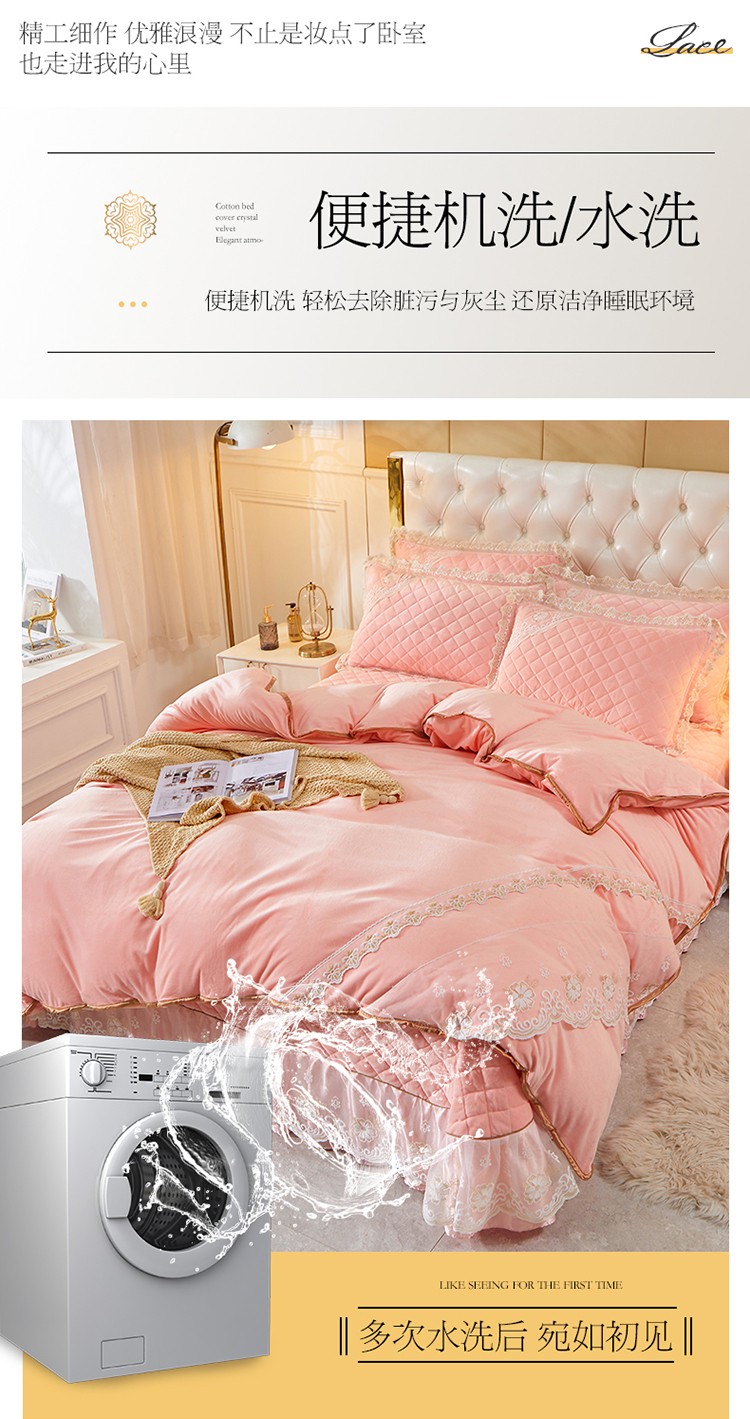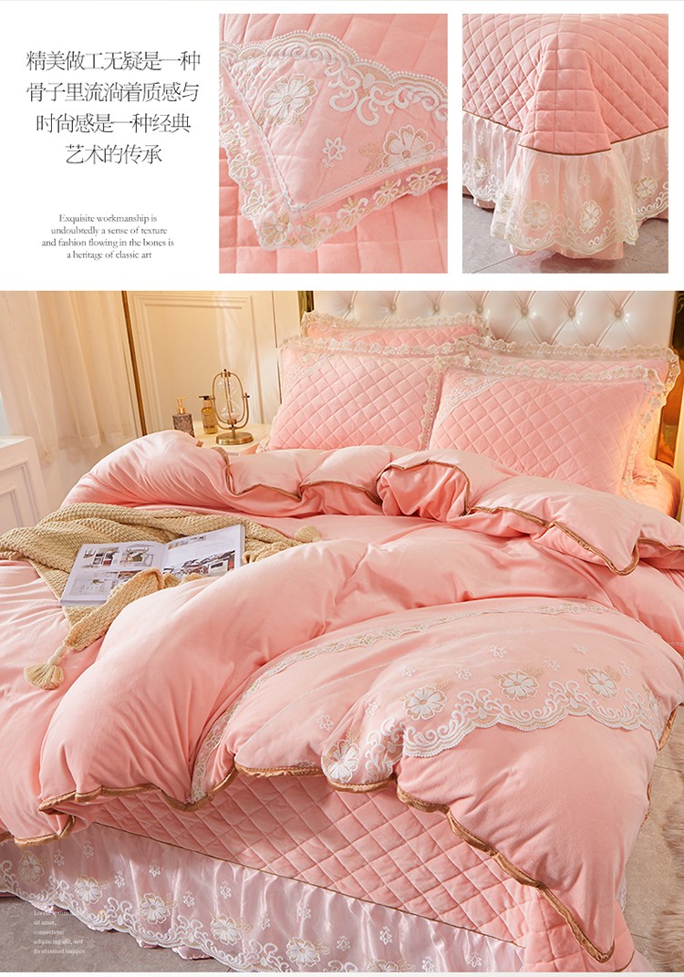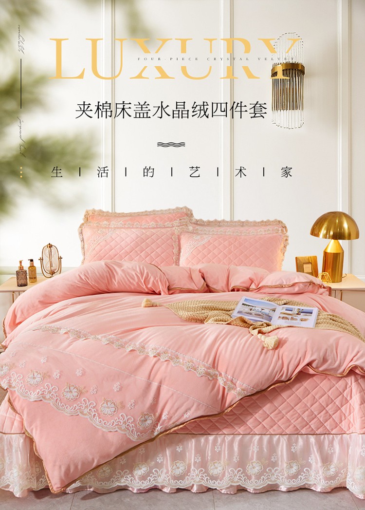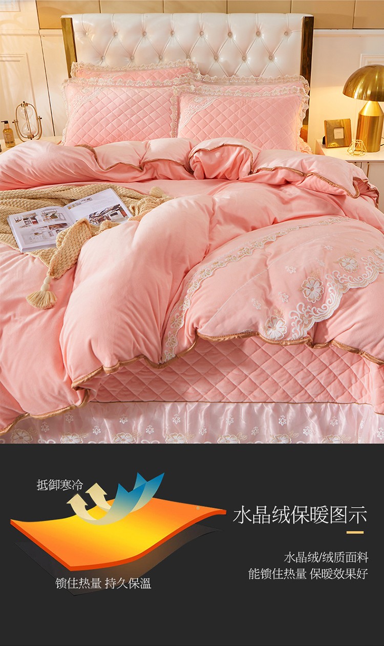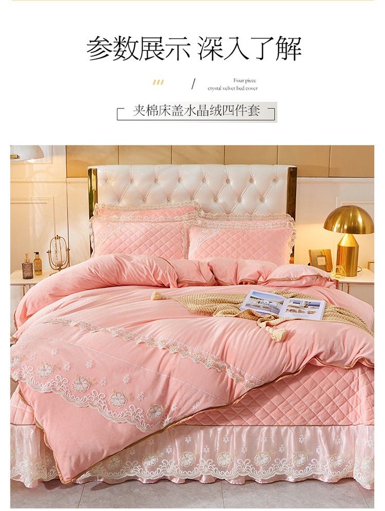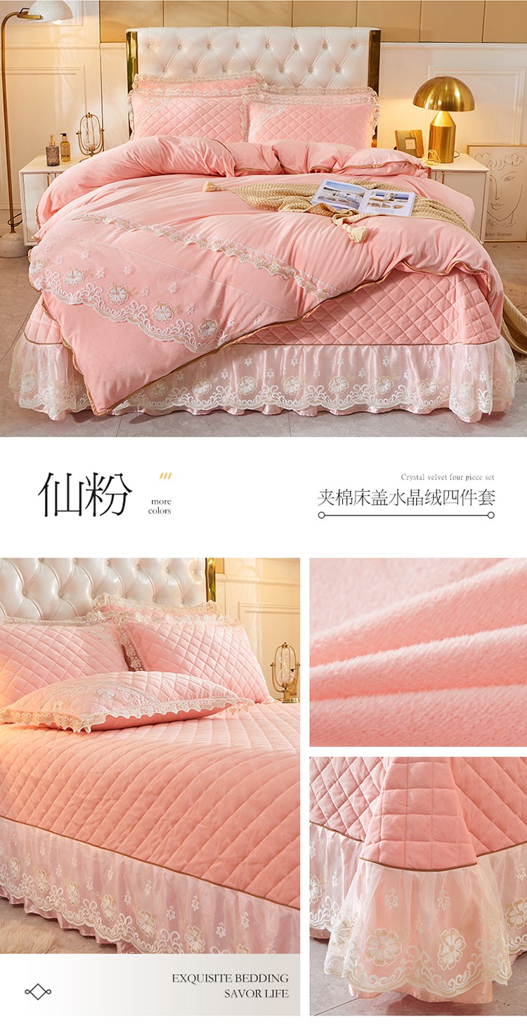 商品名称:网红馆 2025新款曼妮夹棉床盖水晶绒四件套 仙粉