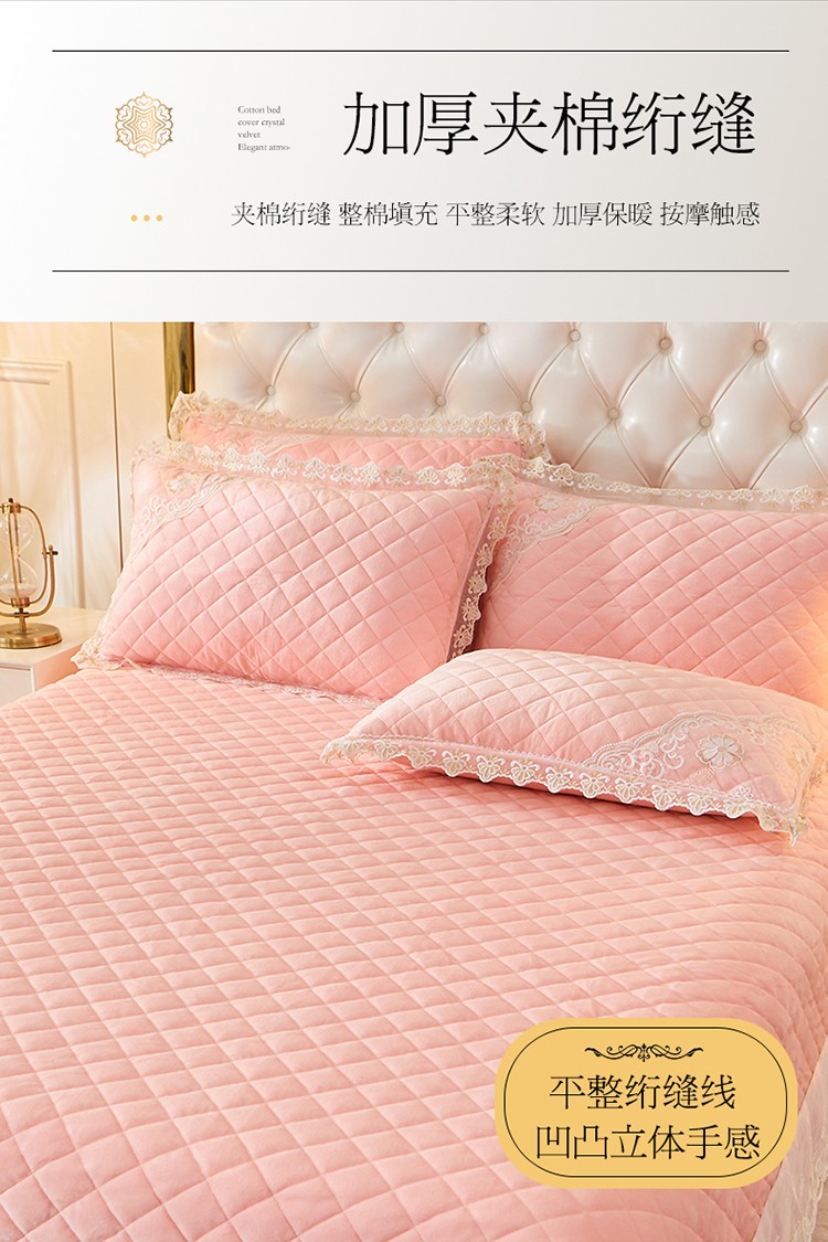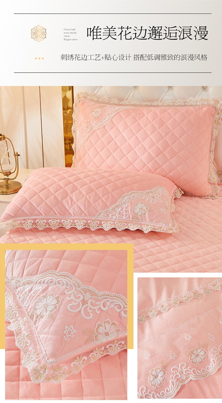 网红馆 2025新款曼妮夹棉床盖水晶绒四件套 仙粉