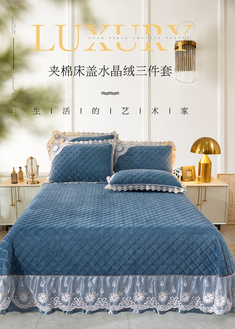 网红馆 2025新款曼妮夹棉水晶绒单品床盖被套枕套 日暮兰