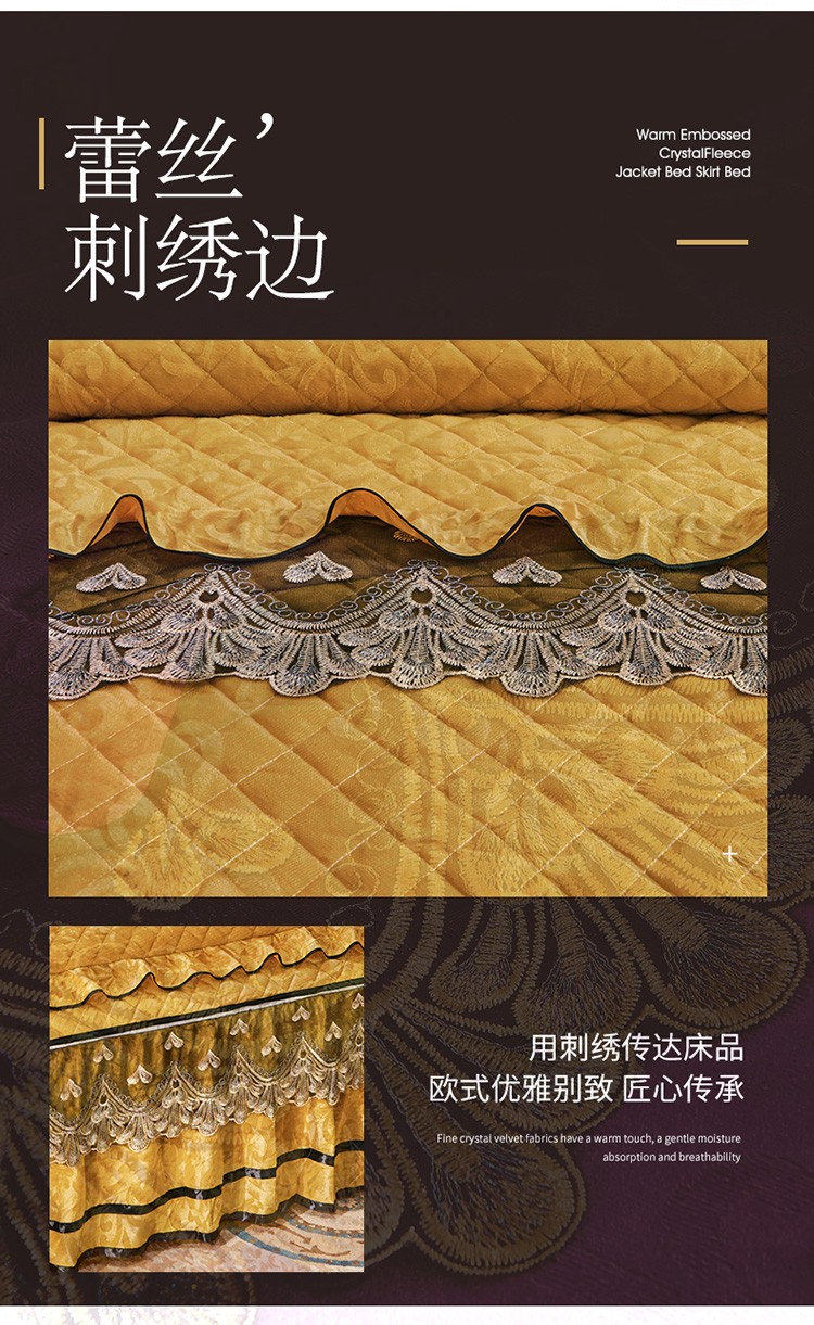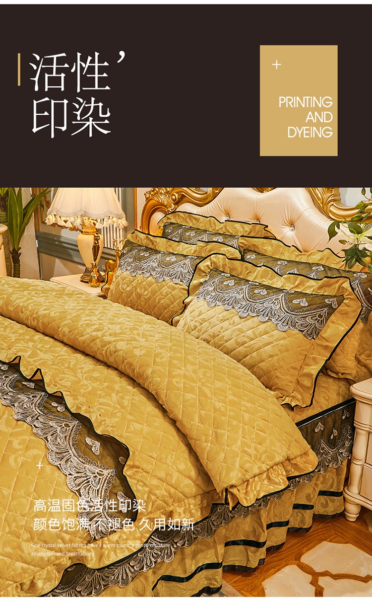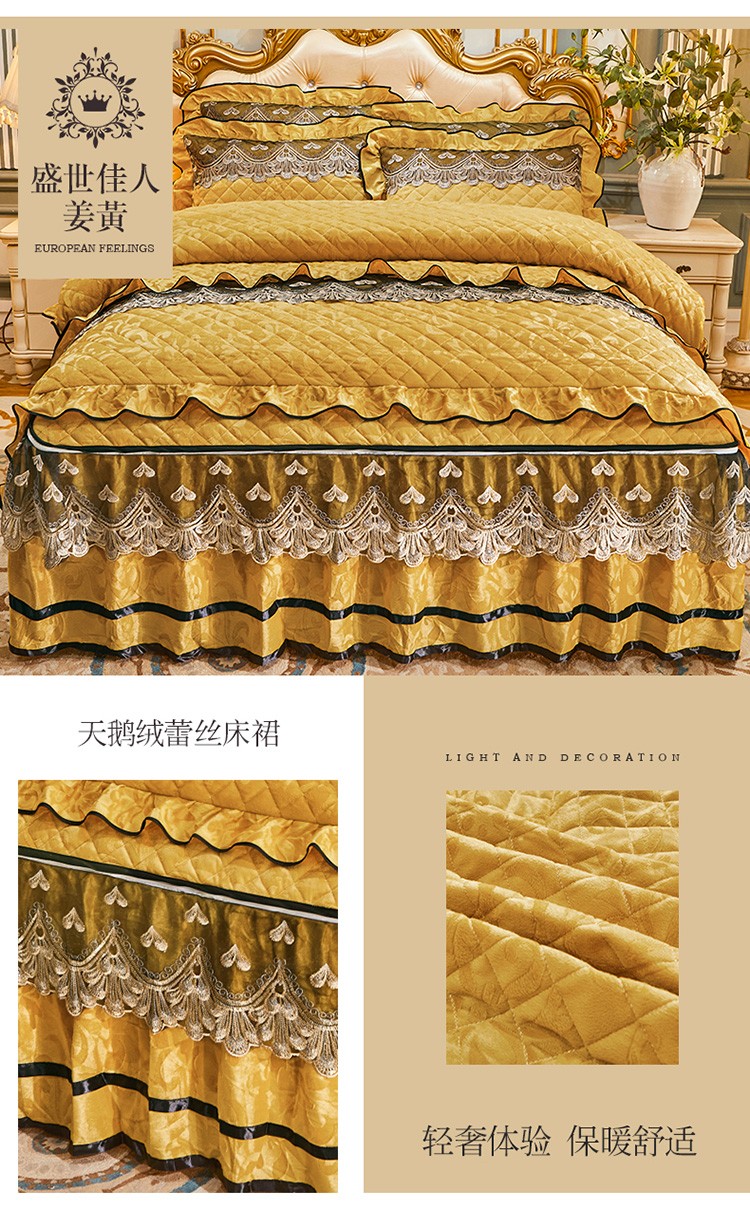 商品名称:网红馆 2025新款盛世佳人天鹅绒床裙全夹棉四件套 姜黄