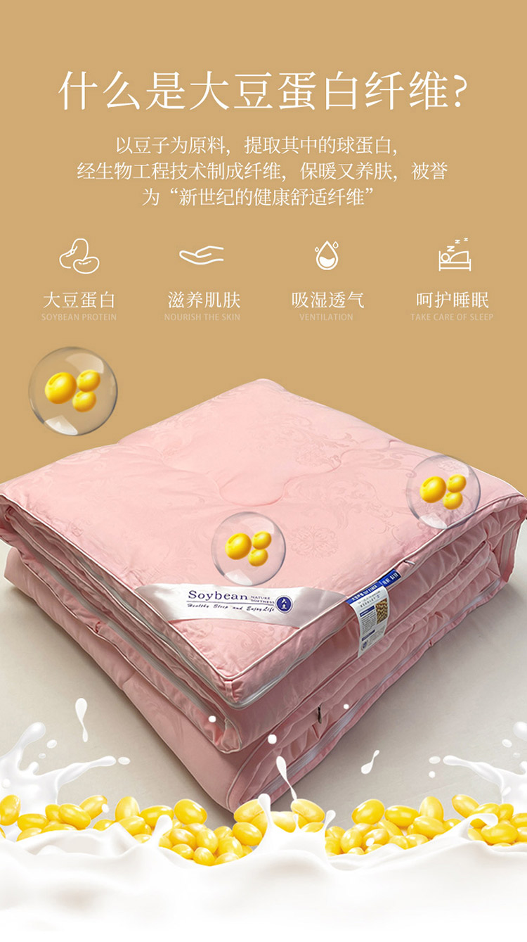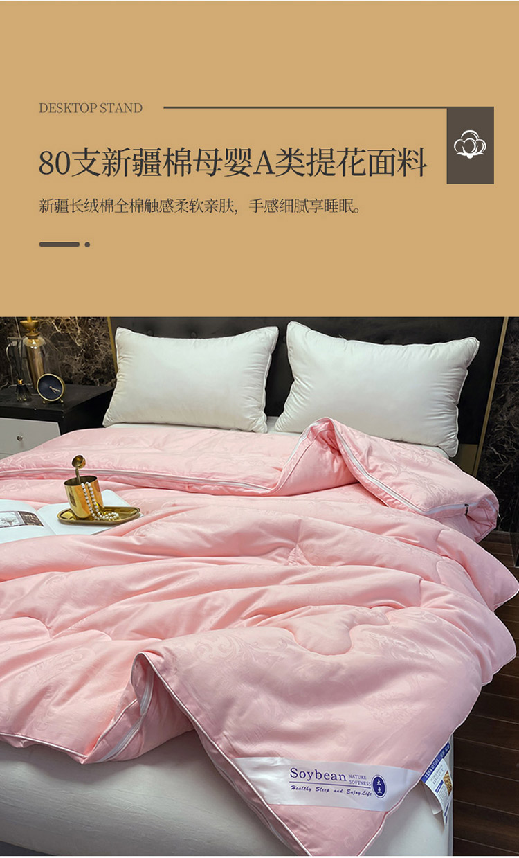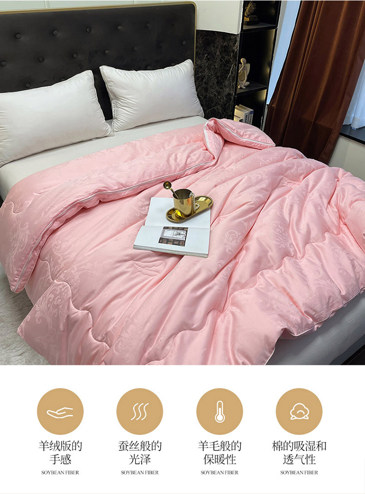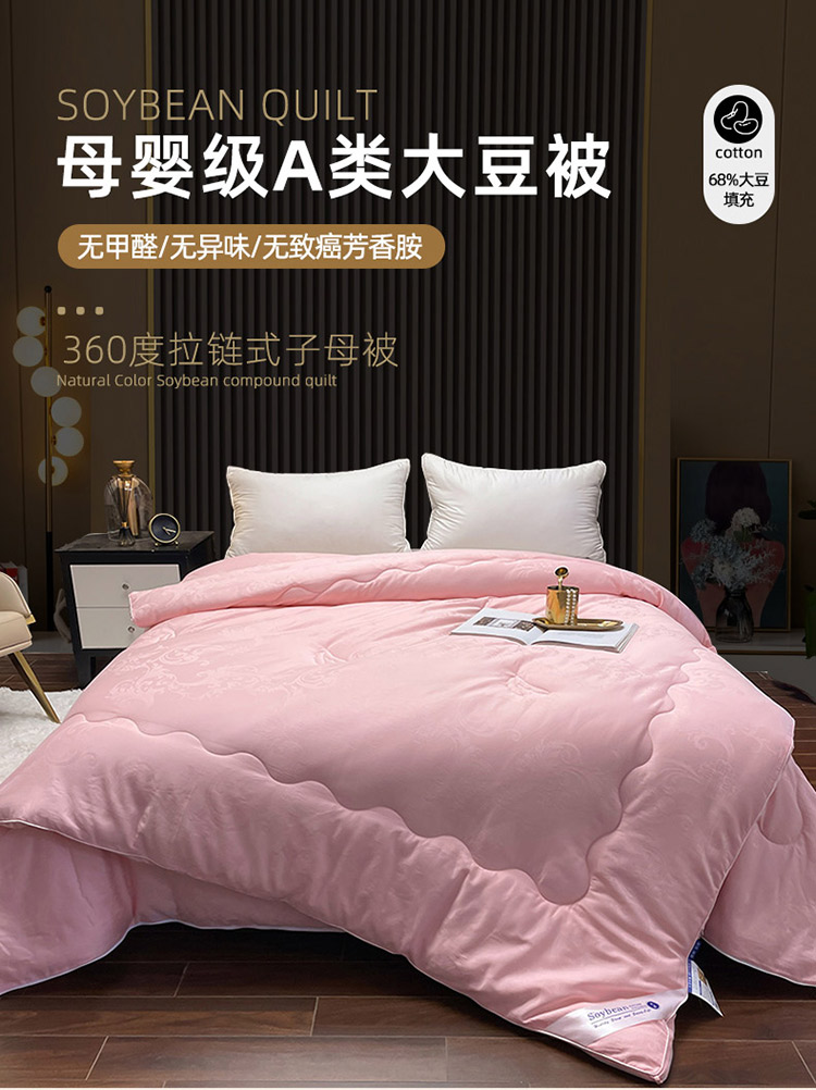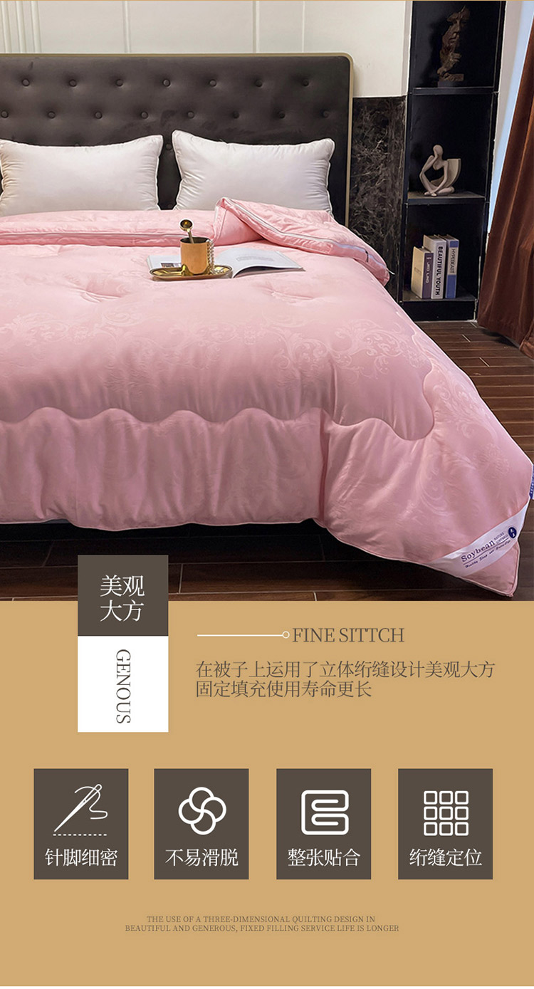 (总)紫乐 A类纯棉全棉天雪棉印花大豆纤维被春秋被加厚冬被纯棉被子被芯,白色,浅粉色,浅灰色,浅咖色