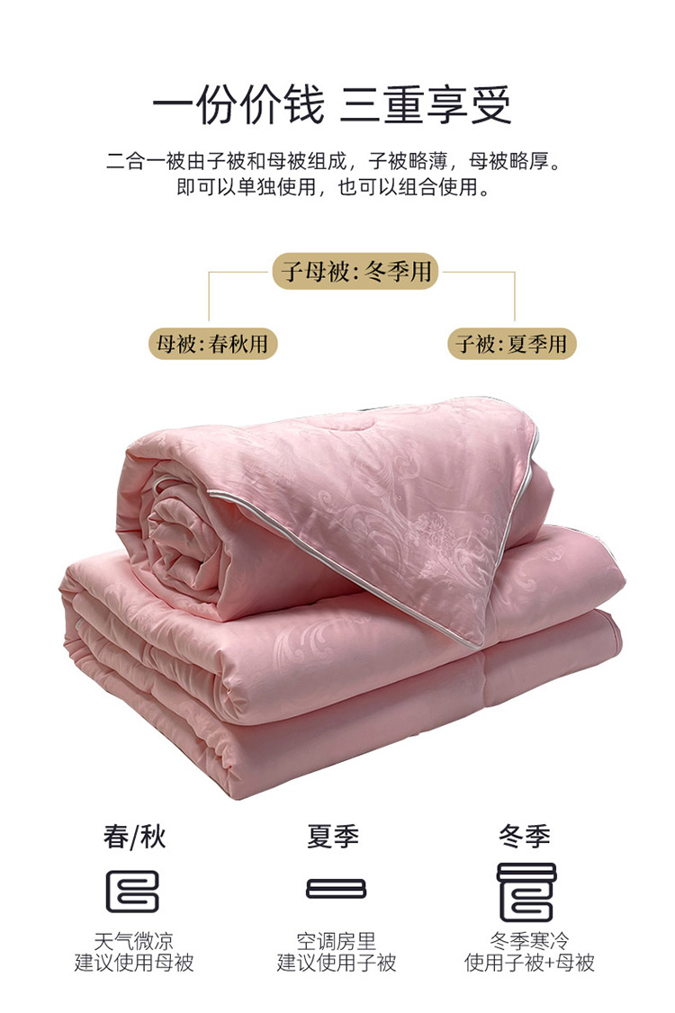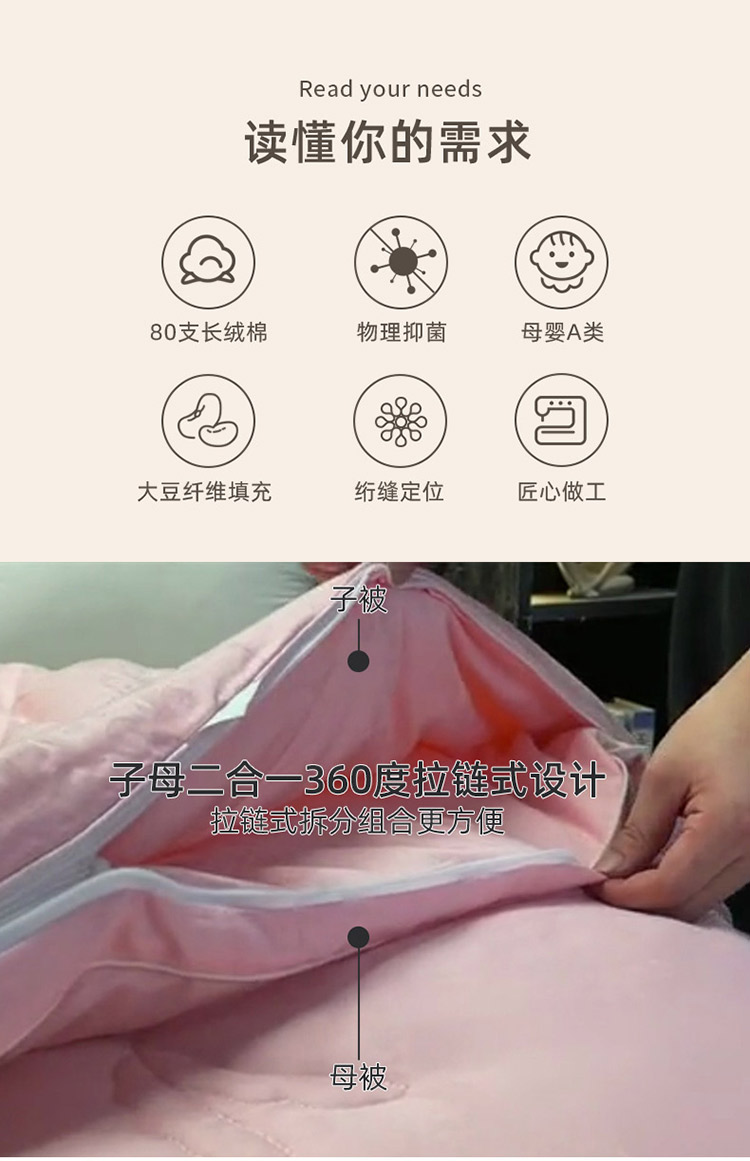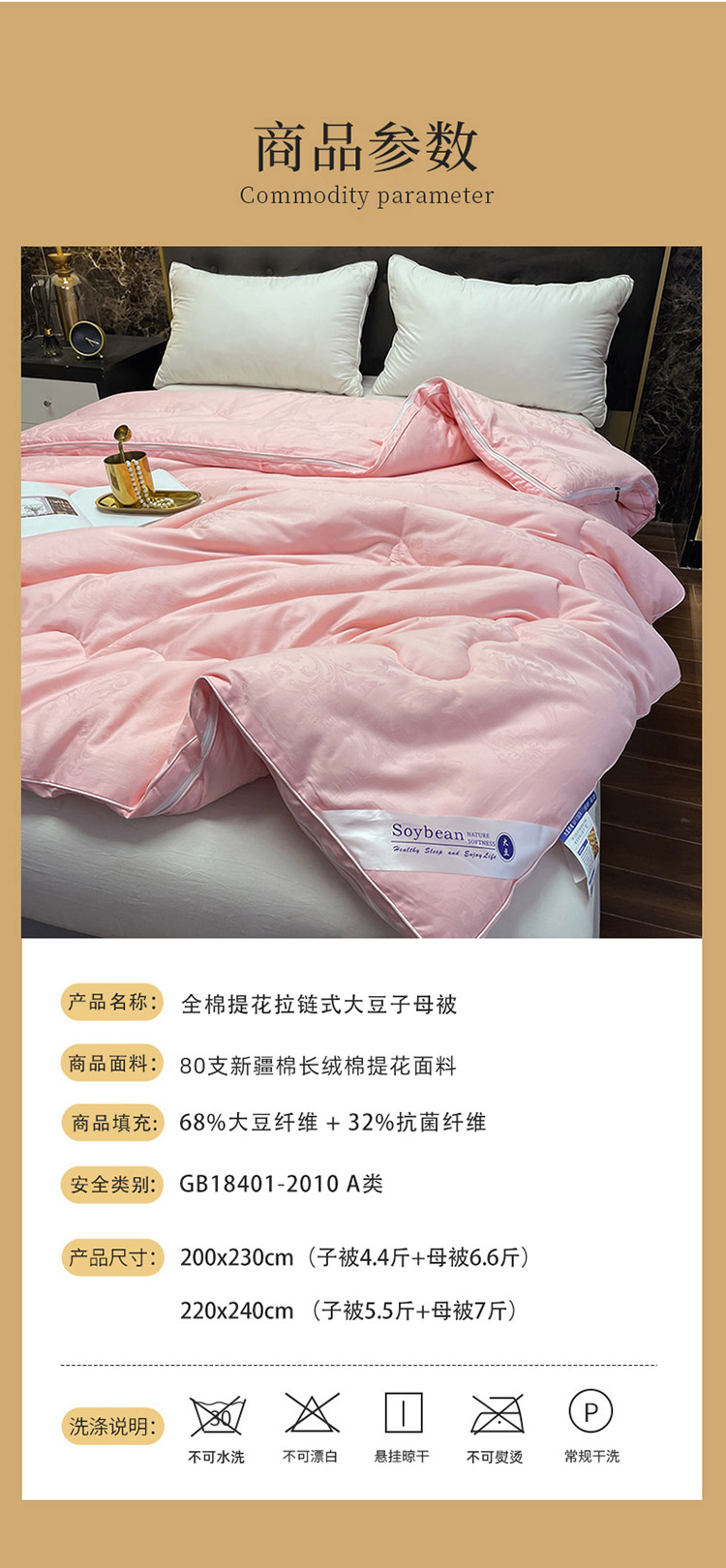 商品名称:紫乐家纺2024新款全棉纯棉提花拉链式大豆纤维子母被加厚冬被被子被芯 玉色