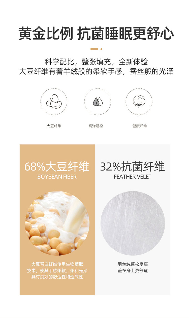 填充纤维种类: 大豆蛋白改性聚酯纤维
