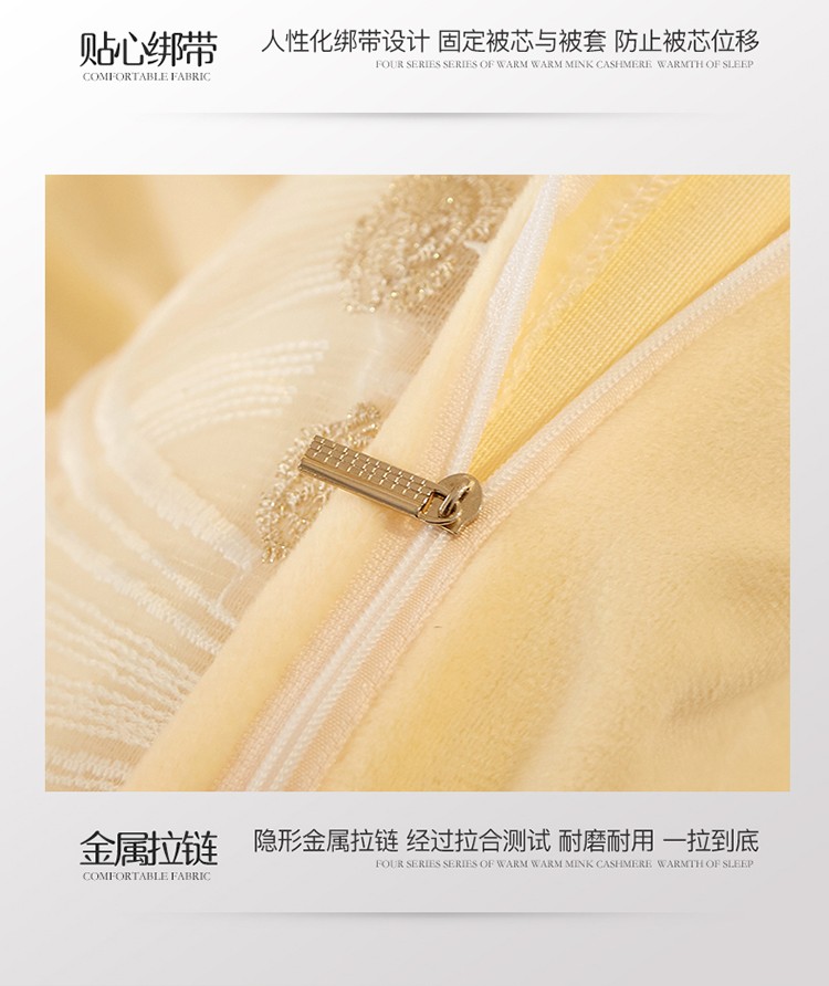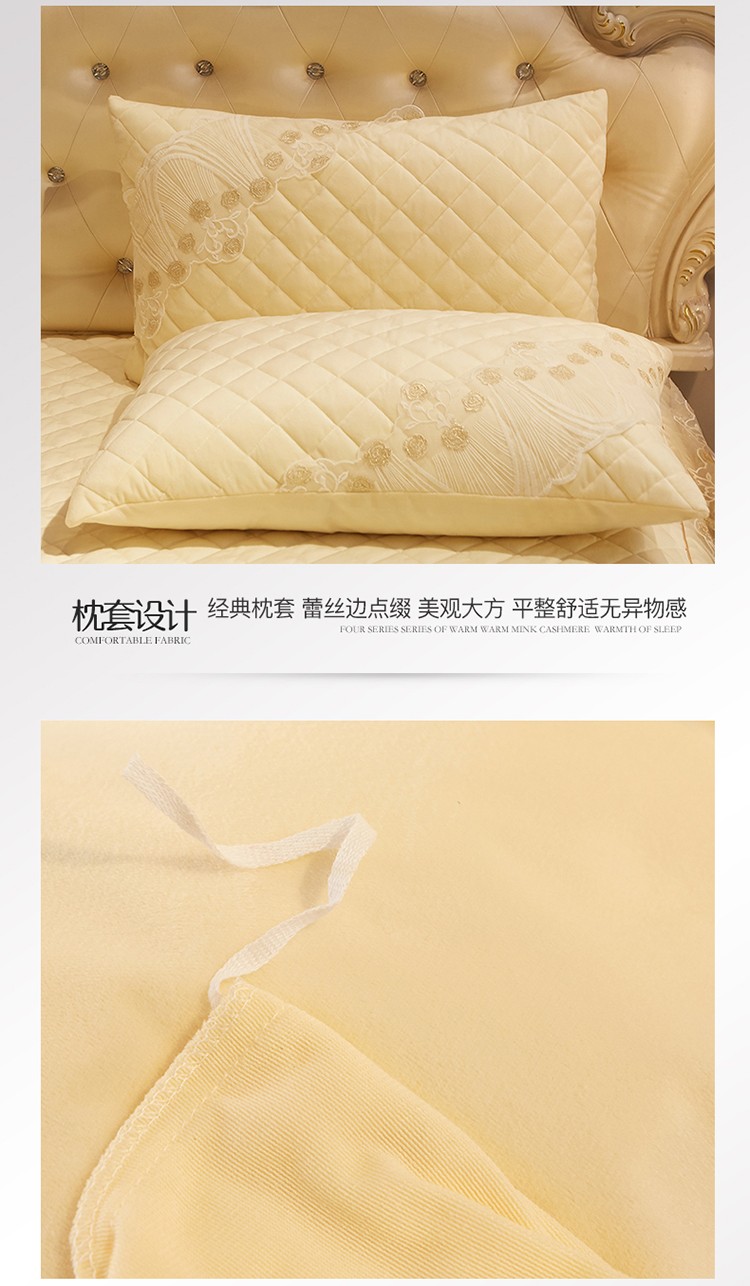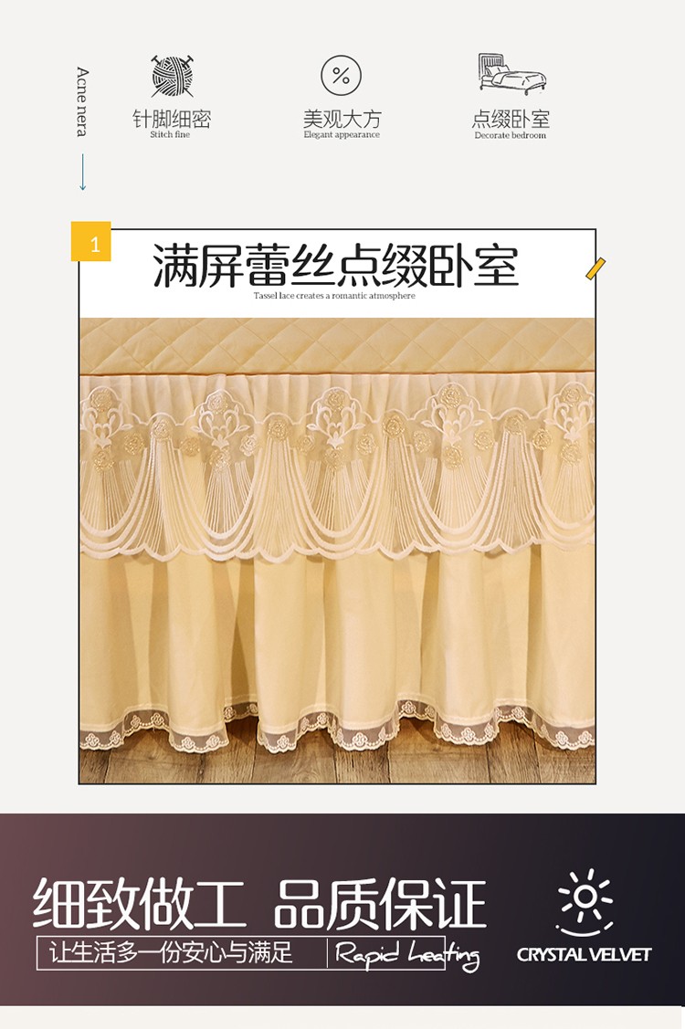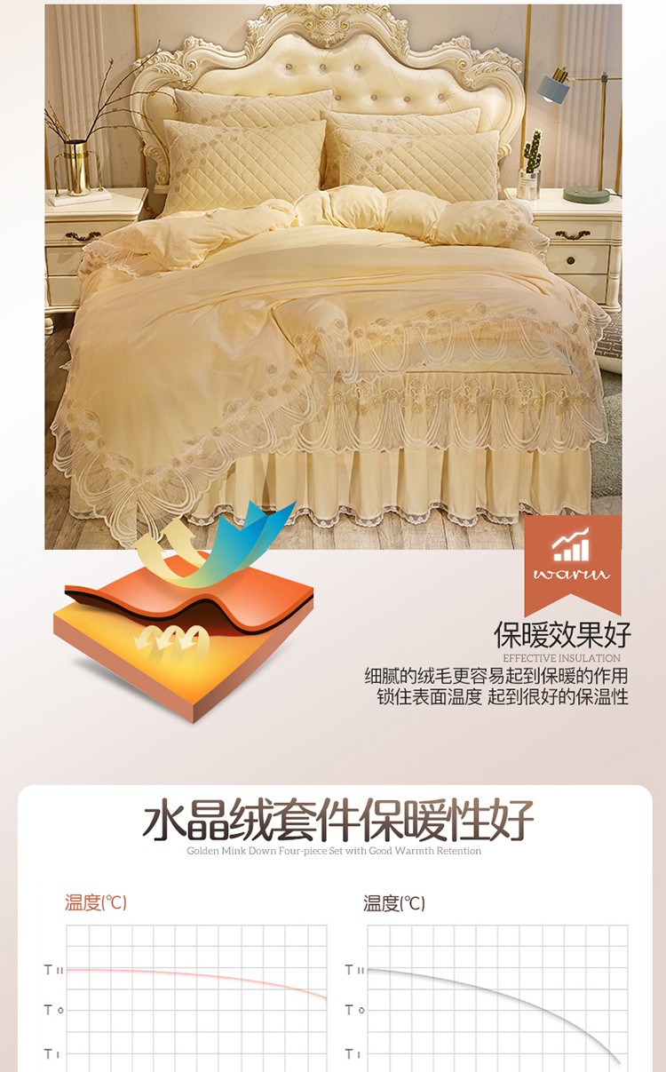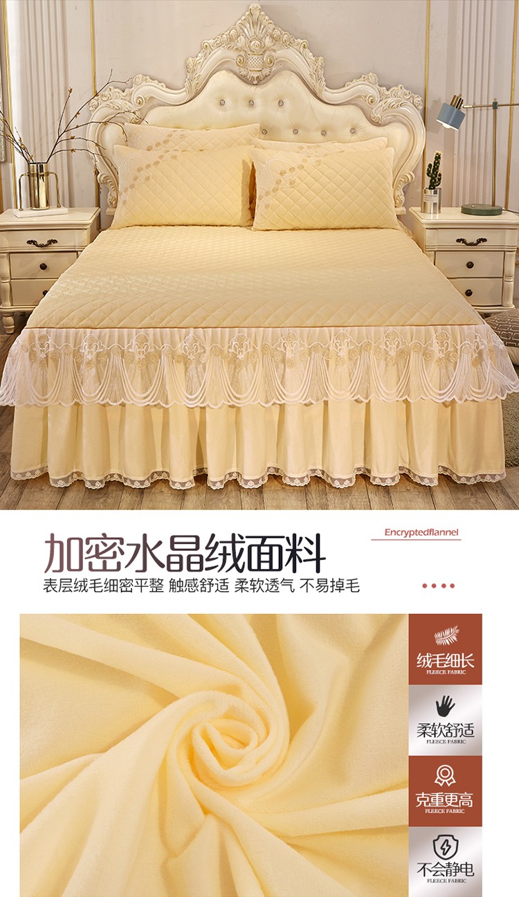 商品名称:网红馆 2025新款幸福花开水晶绒蕾丝床裙四件套 米黄