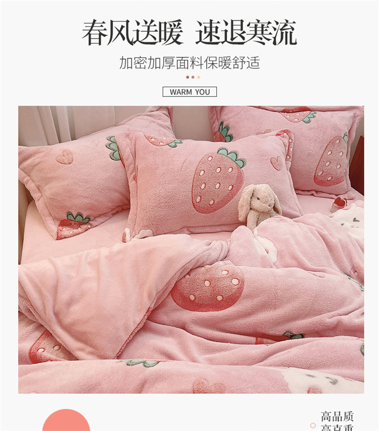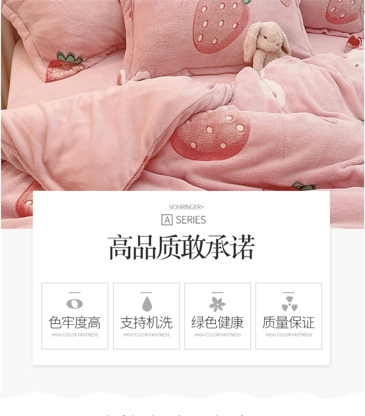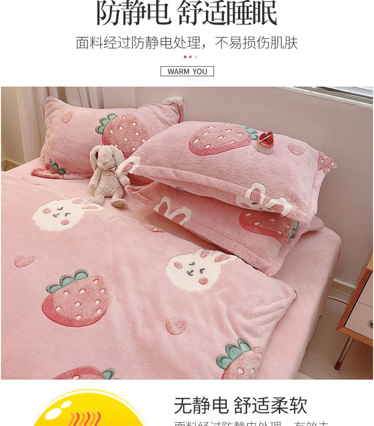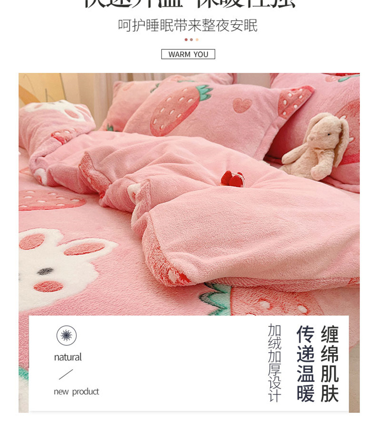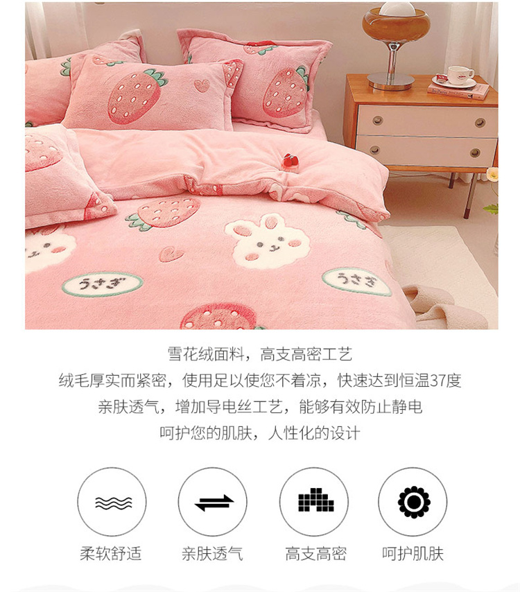 当前位置: 91家纺网 > 商品网购 > 床品套件 > 四件套 > 磨绒四件套 > 川悦生活 2021新款立体雪花绒四件套直播供货 幸运草莓兔