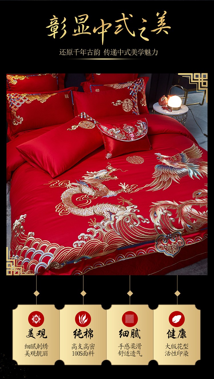 当前位置: 91家纺网 > 商品网购 > 床品套件 > 多件套 > 多件套 > 高大尚长绒棉AB版系列婚庆多件套-龙凤祥和