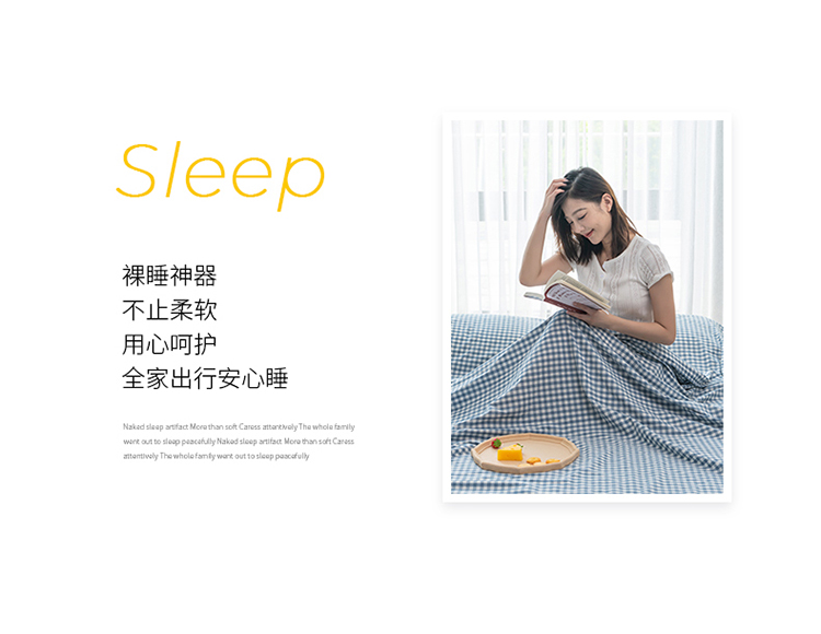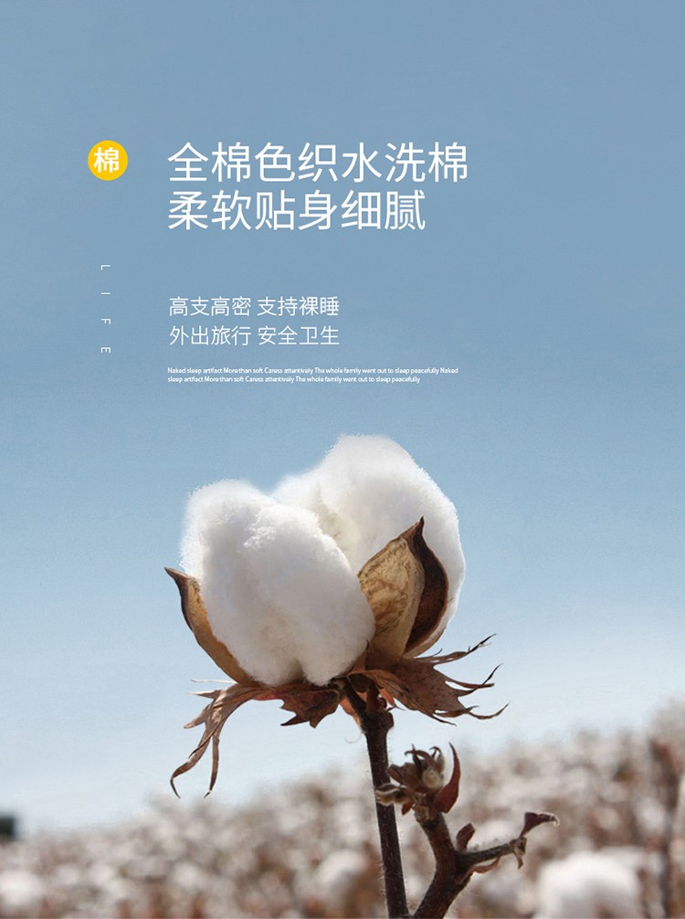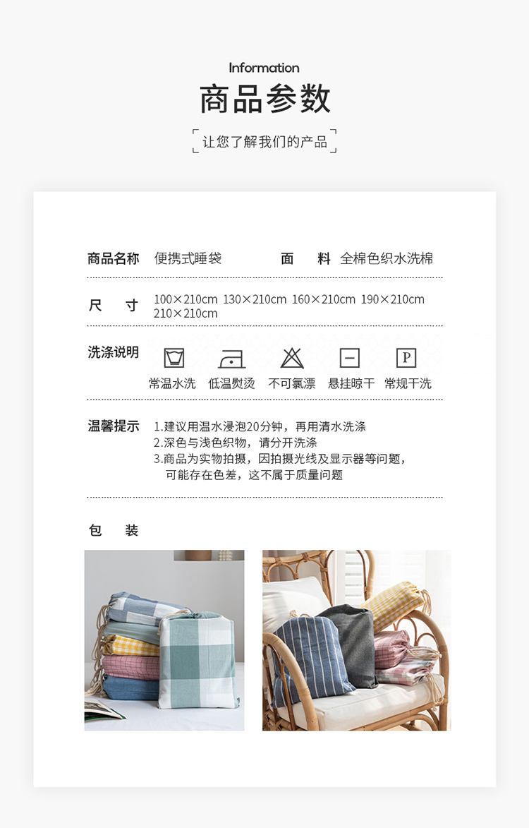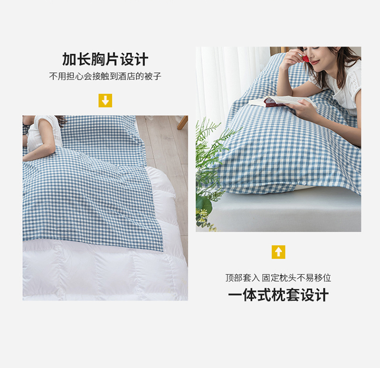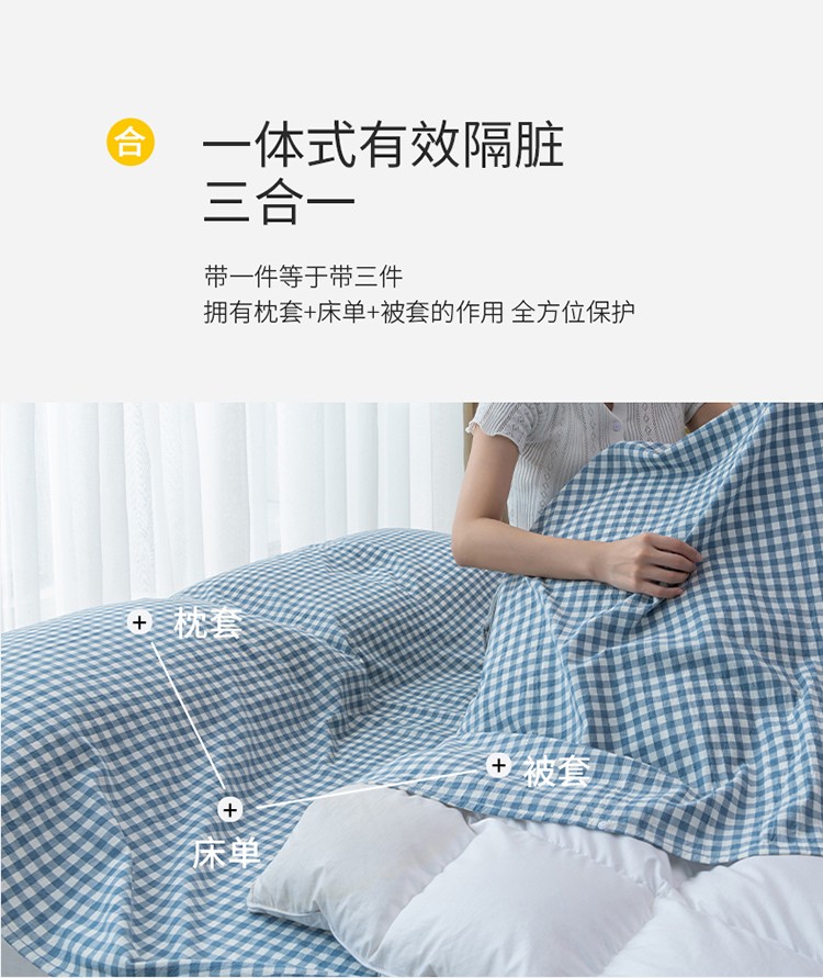 商品名称:乐童家纺 2021新款全棉色织水洗棉隔脏睡袋 天蓝小格