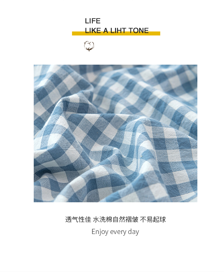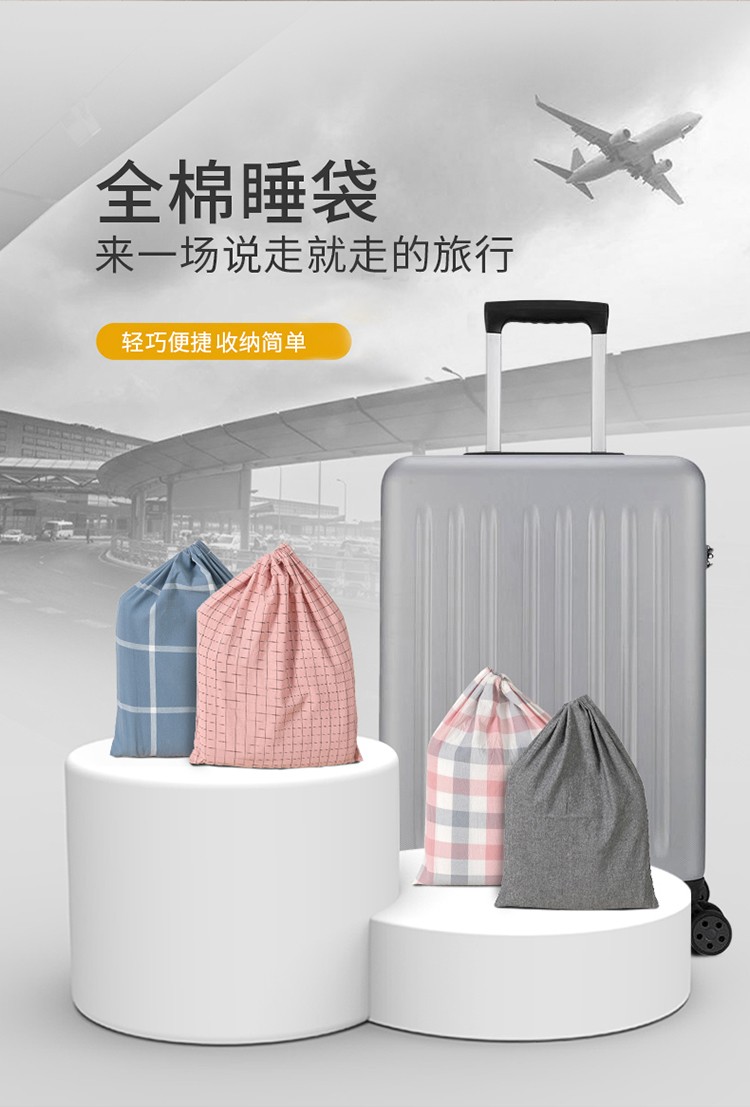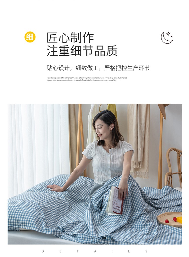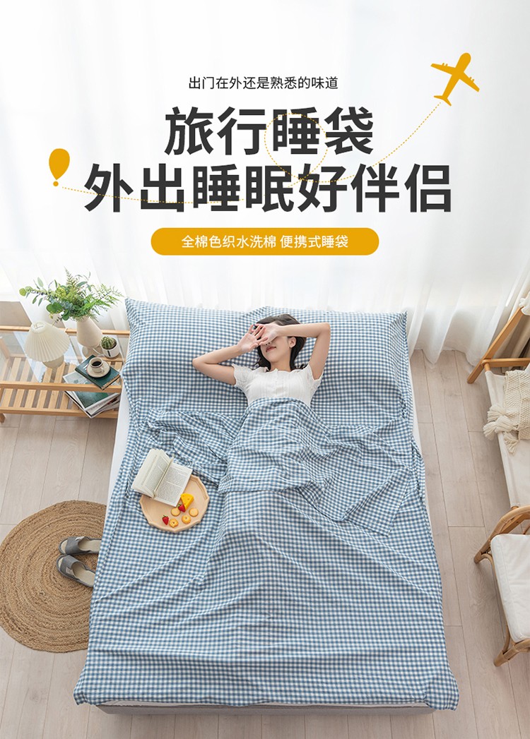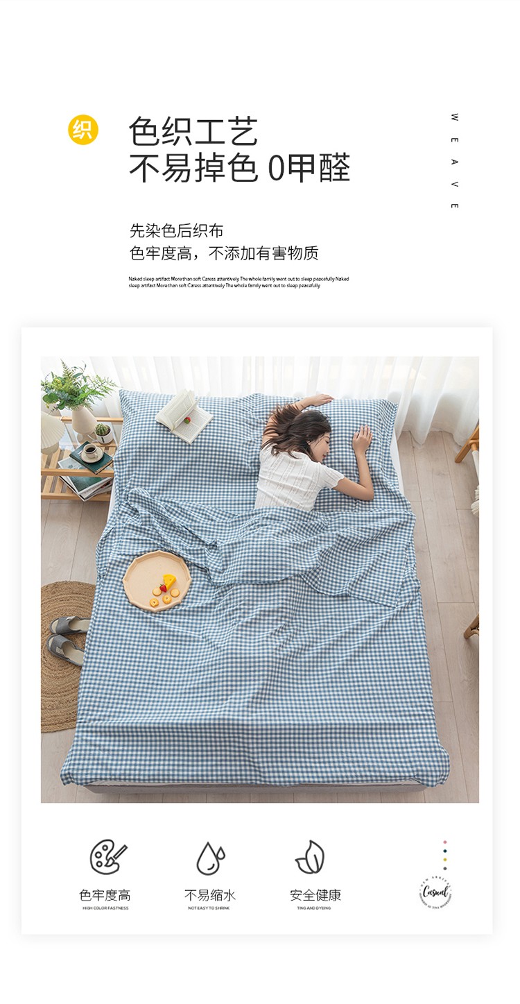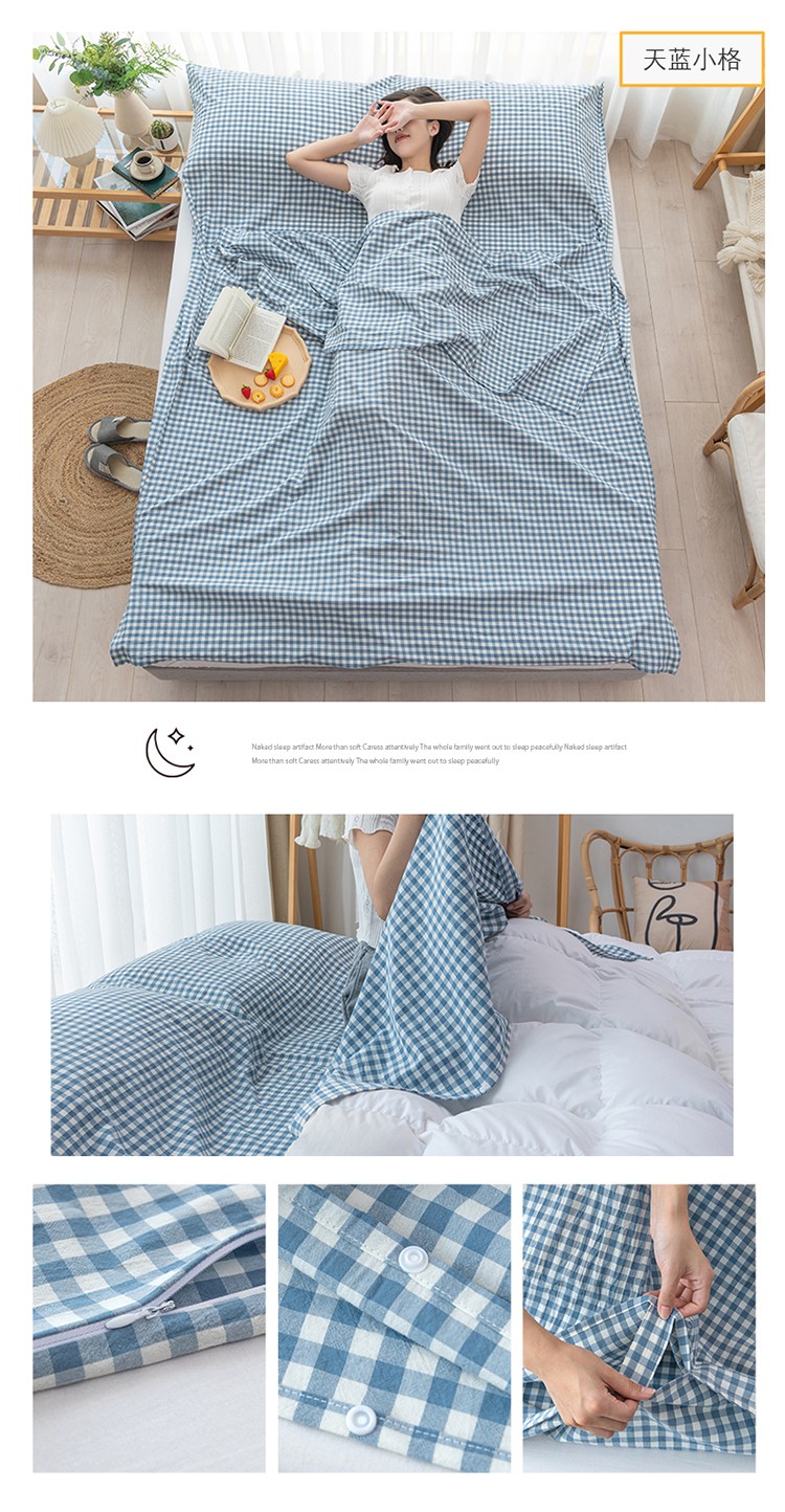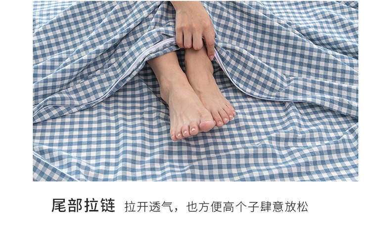 乐童家纺 2021新款全棉色织水洗棉隔脏睡袋 天蓝小格