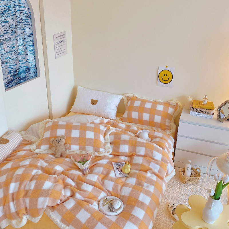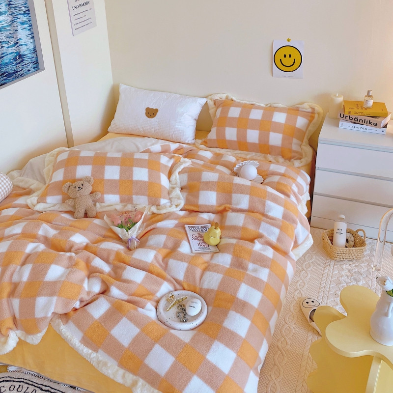 (总)顾里家纺 2024新款ins韩系牛奶羊羔绒套件,羊羔粉黄,羊羔白蓝,羊羔黄蓝,羊羔灰,羊羔咖,羊羔蓝,羊羔蓝黄,羊羔绿粉,羊羔米,羊羔奶黄,羊羔暖咖,羊羔紫
