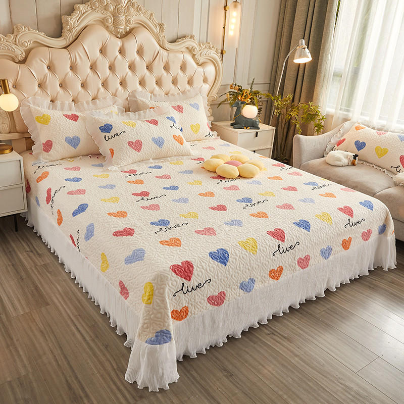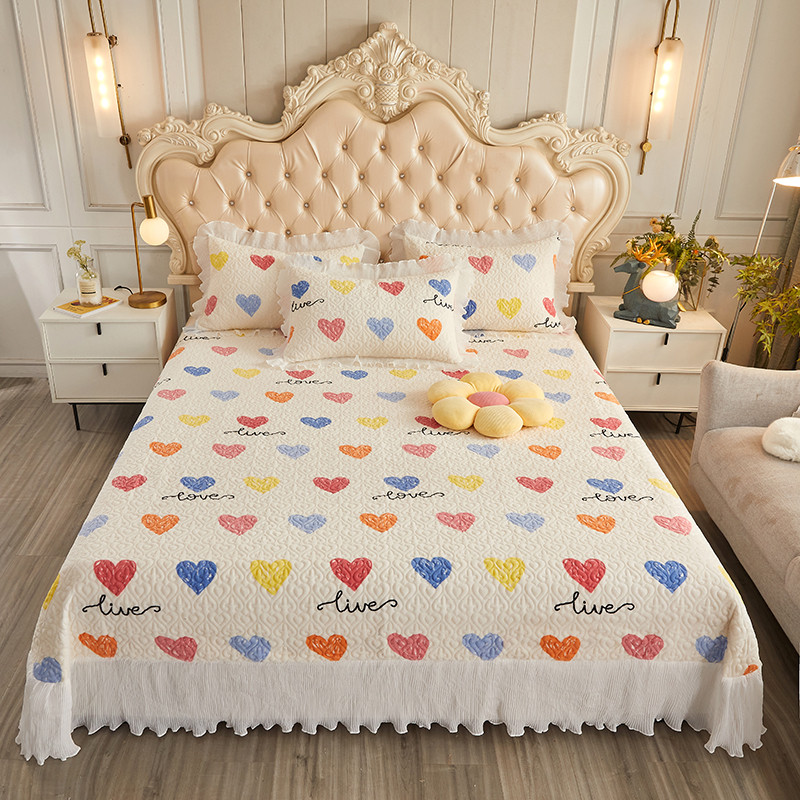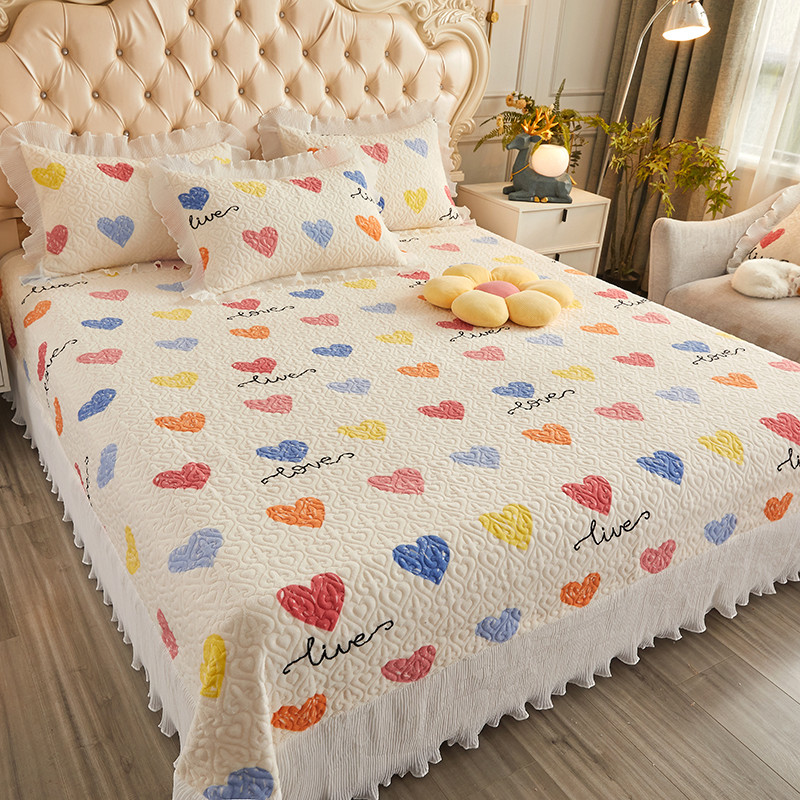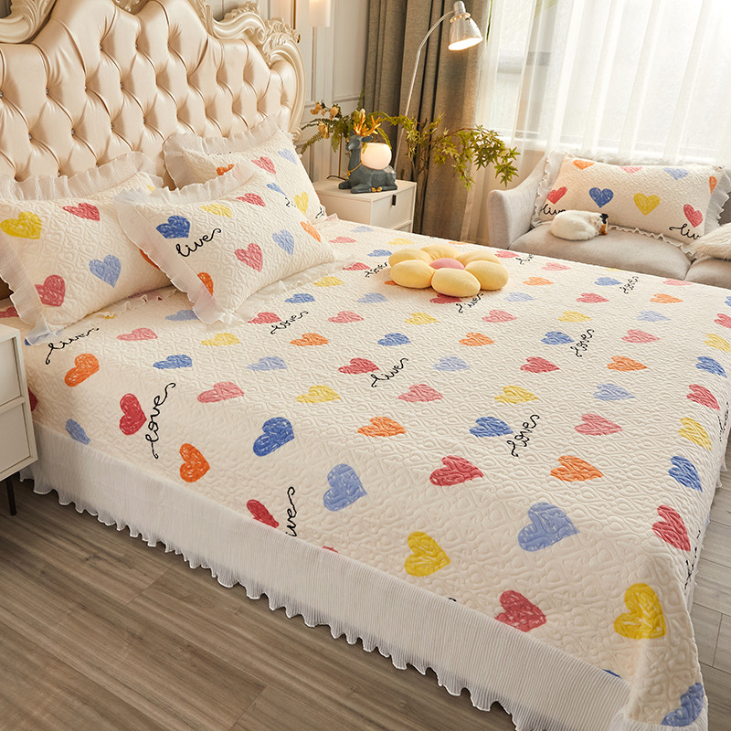 宜凡 2021新款牛奶绒单床盖 爱心派对