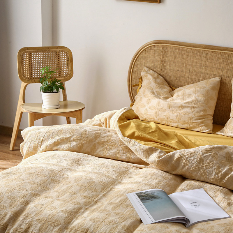 当前位置: 91家纺网 > 商品网购 > 床品套件 > 四件套 > 全棉普通四件套 > 安莱生活双层纱四叶草色织大提花蝴蝶结工艺款四件套纱姜黄幸运草