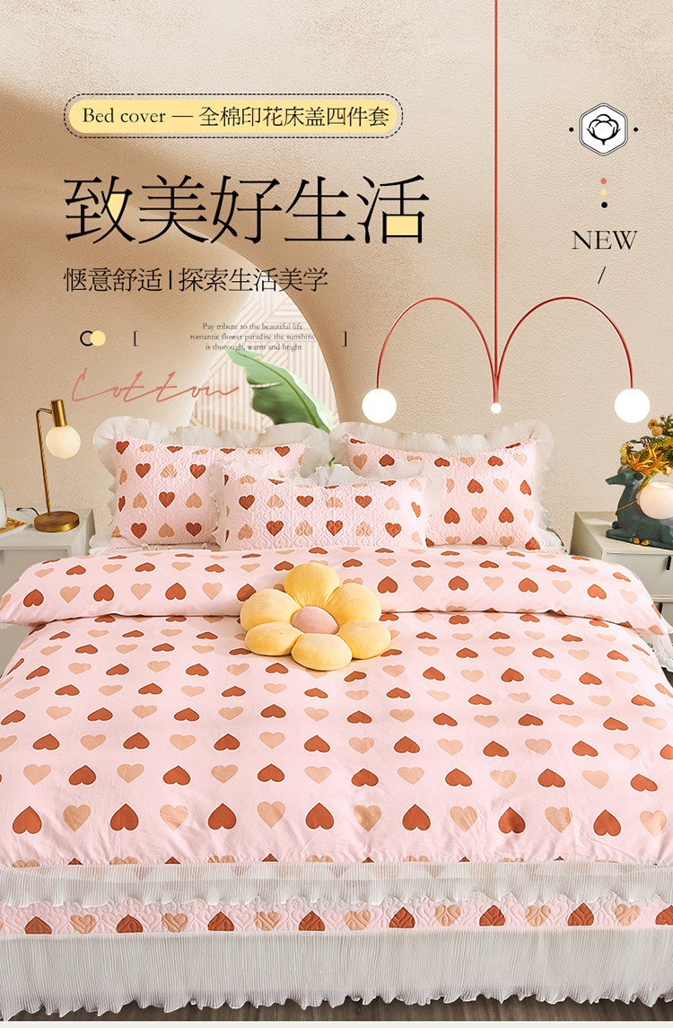 宜凡 2023新款全棉印花床盖四件套 心语