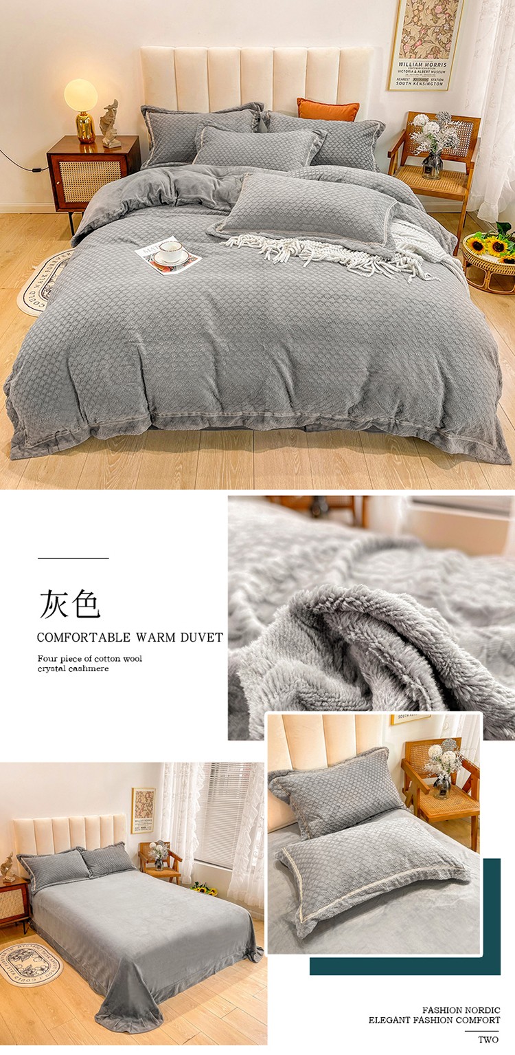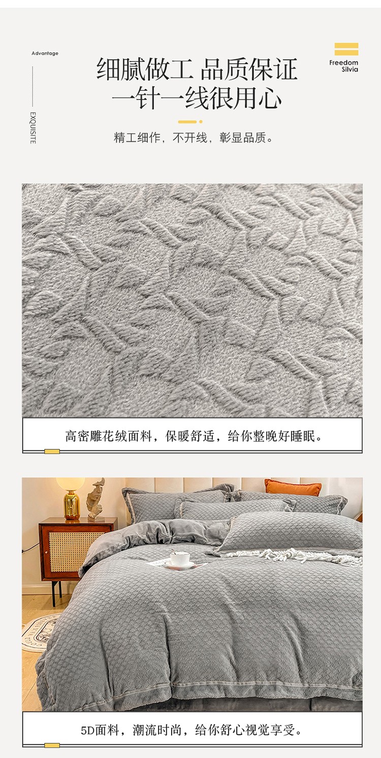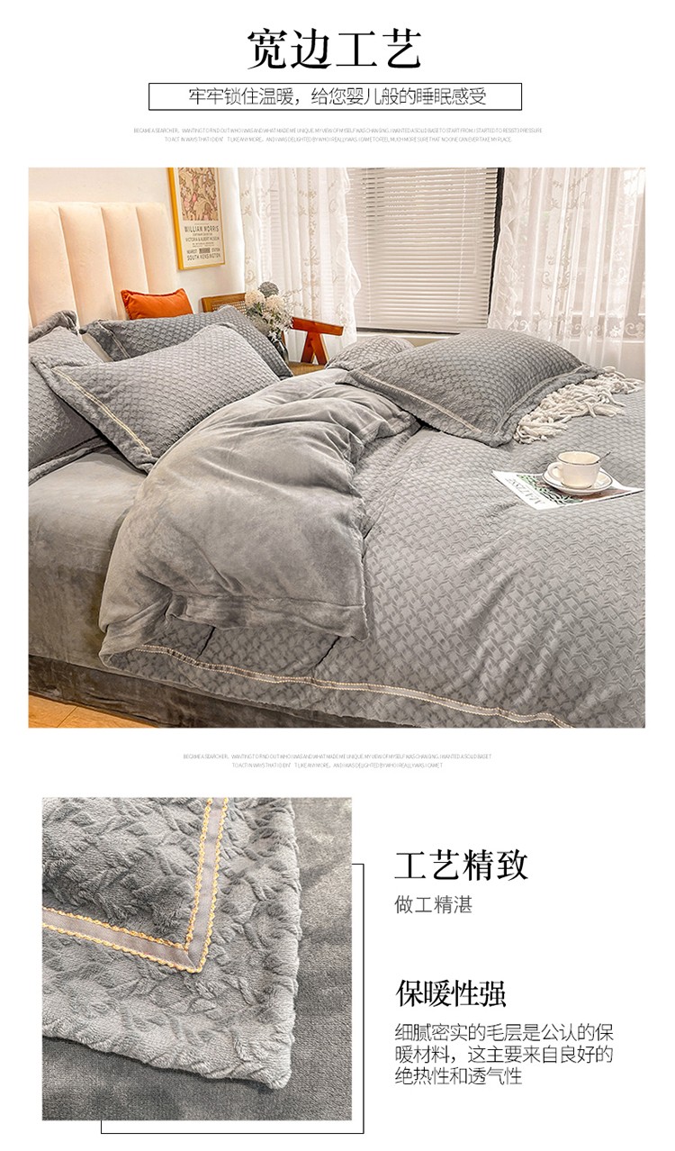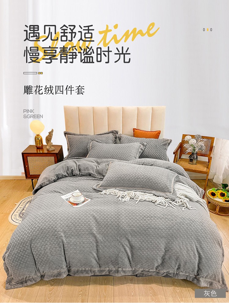 商品名称:金爱家2021新款荷叶边立体雕花绒暖绒四件套 灰