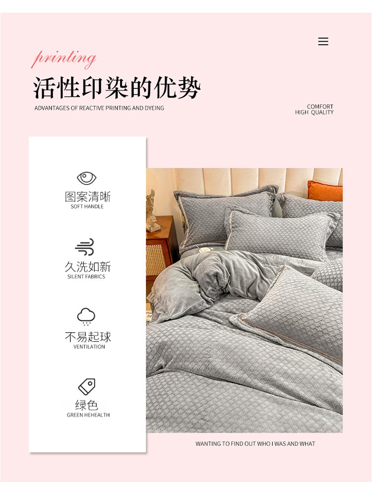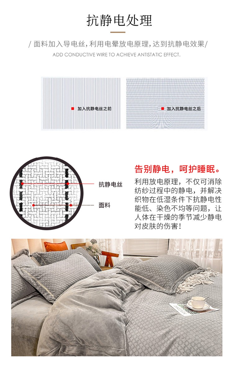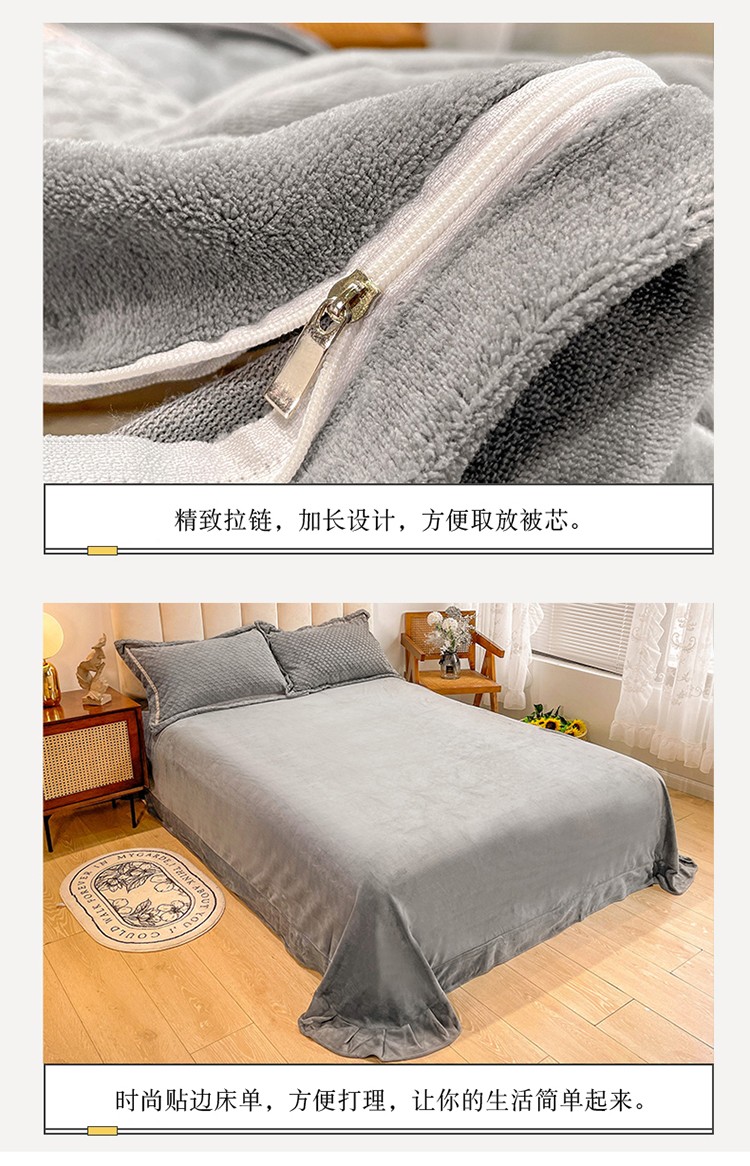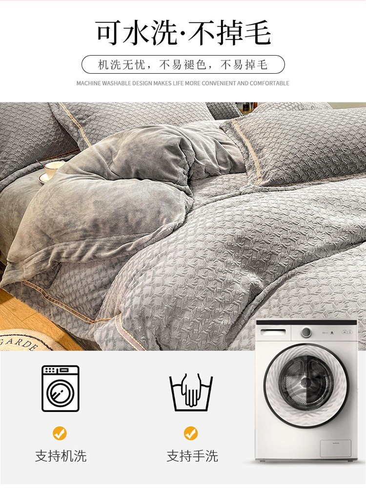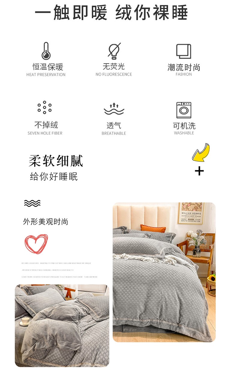 商品名称:金爱家2021新款荷叶边立体雕花绒暖绒四件套 灰