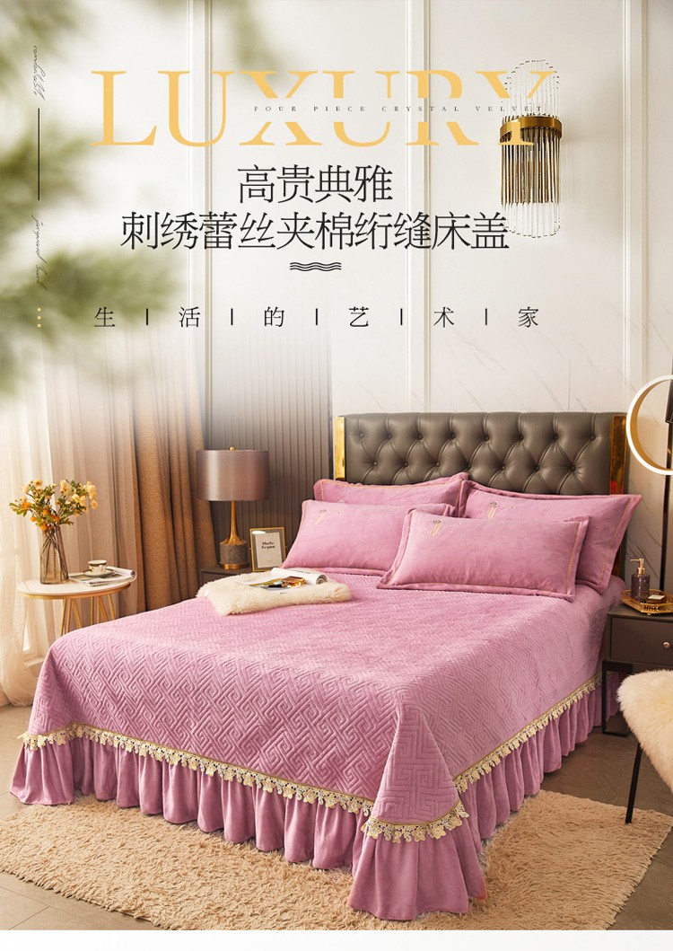 (总)菊上家纺 2023秋冬新品法式花边全棉床盖四件套,安妮紫,花千骨,小欢喜,布拉格,罗蔓莉,玛雅灰,小幸运,卡町绿,恋花影,薇薇安