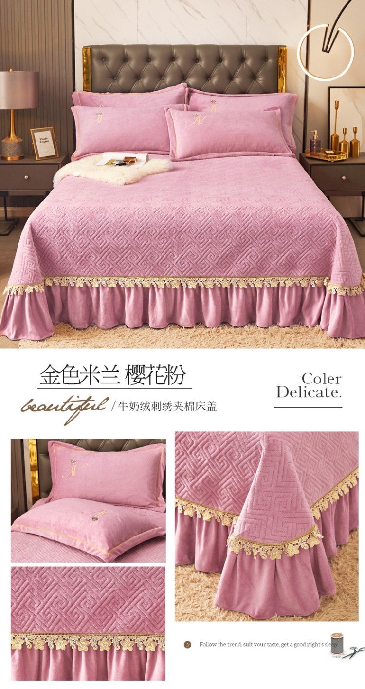 商品名称:菊上家纺 2021新款牛奶绒金色米兰系列-单床盖 樱花粉