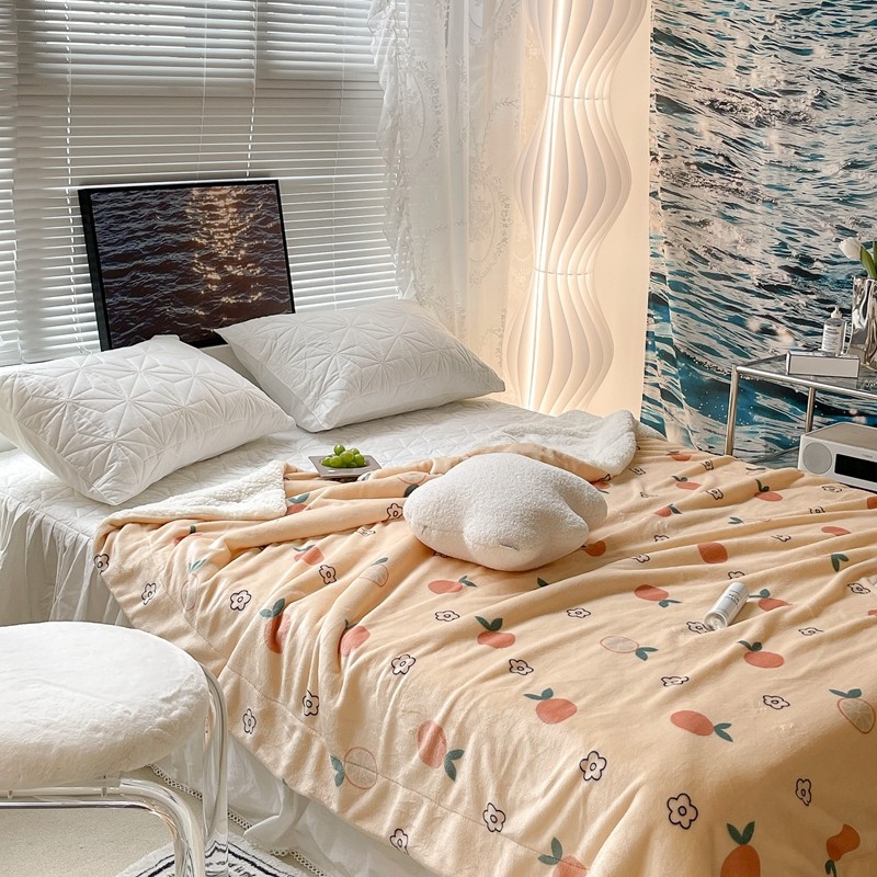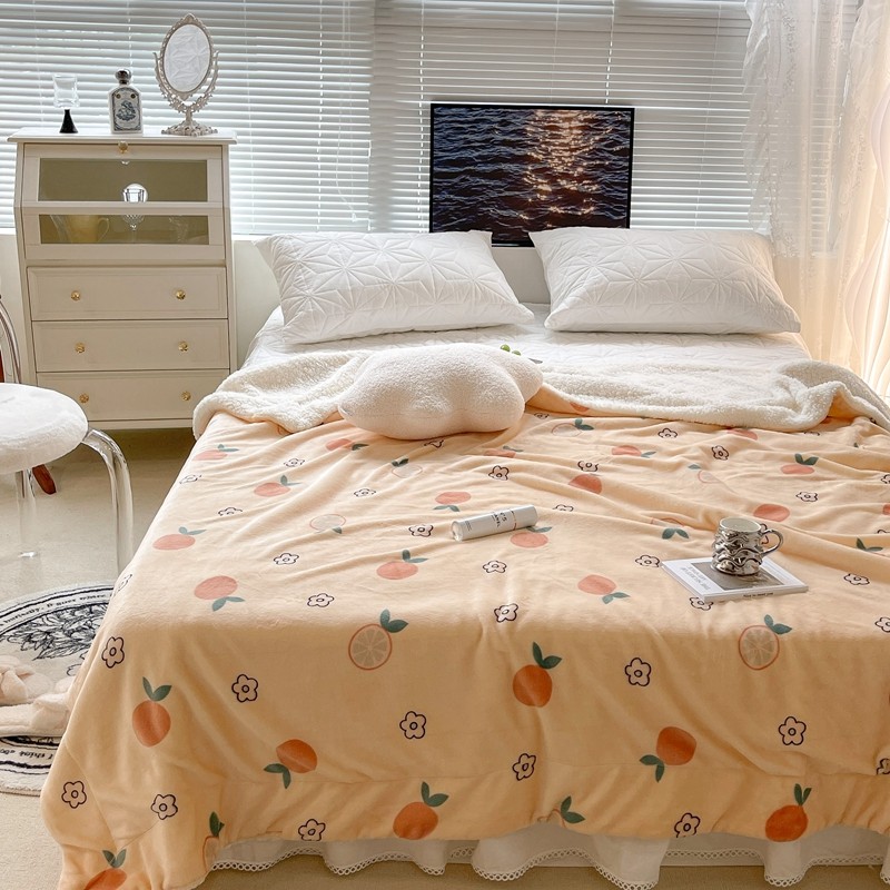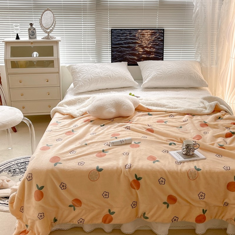 商品名称:昔可家纺 2021新款牛奶羊羔绒印花毯 花朵橙