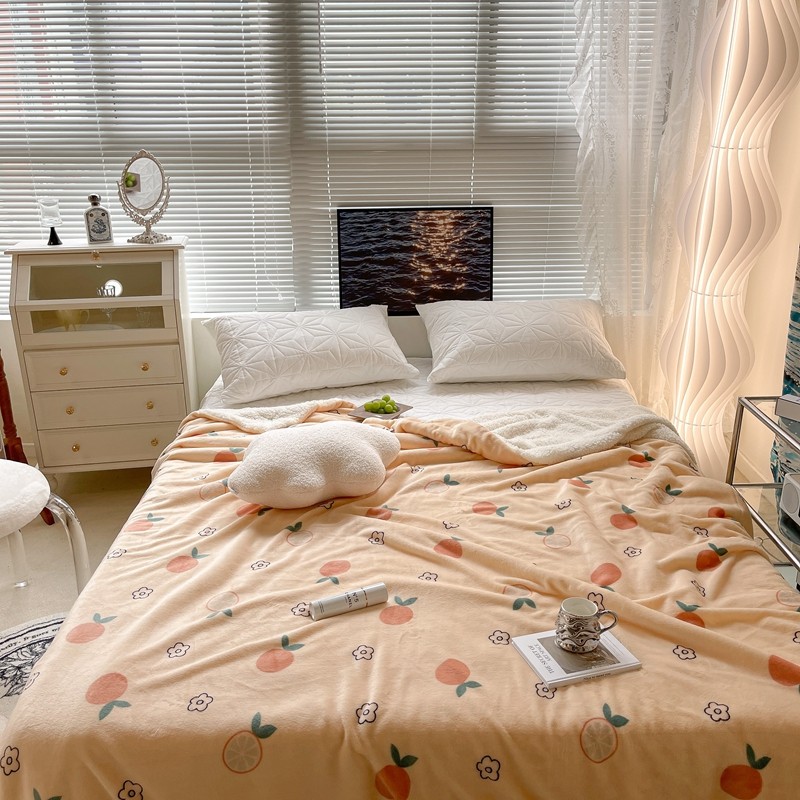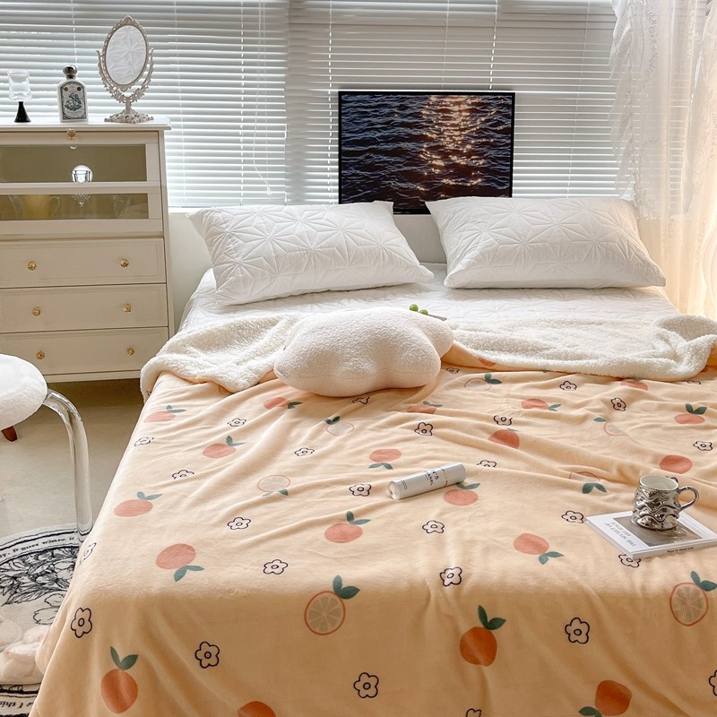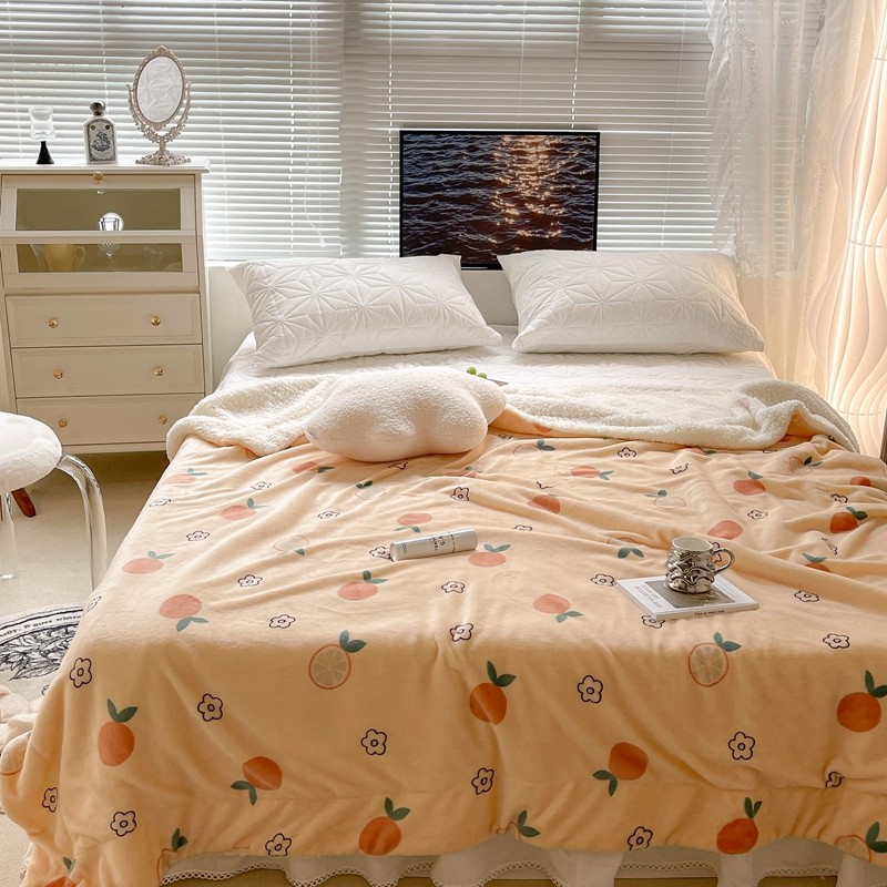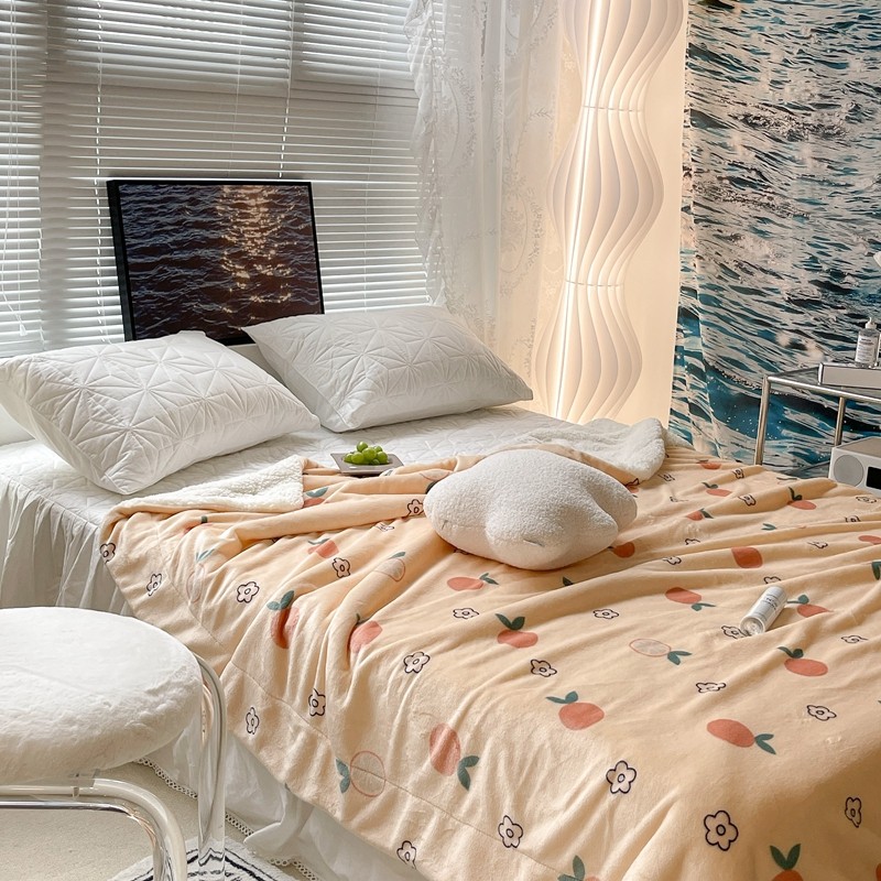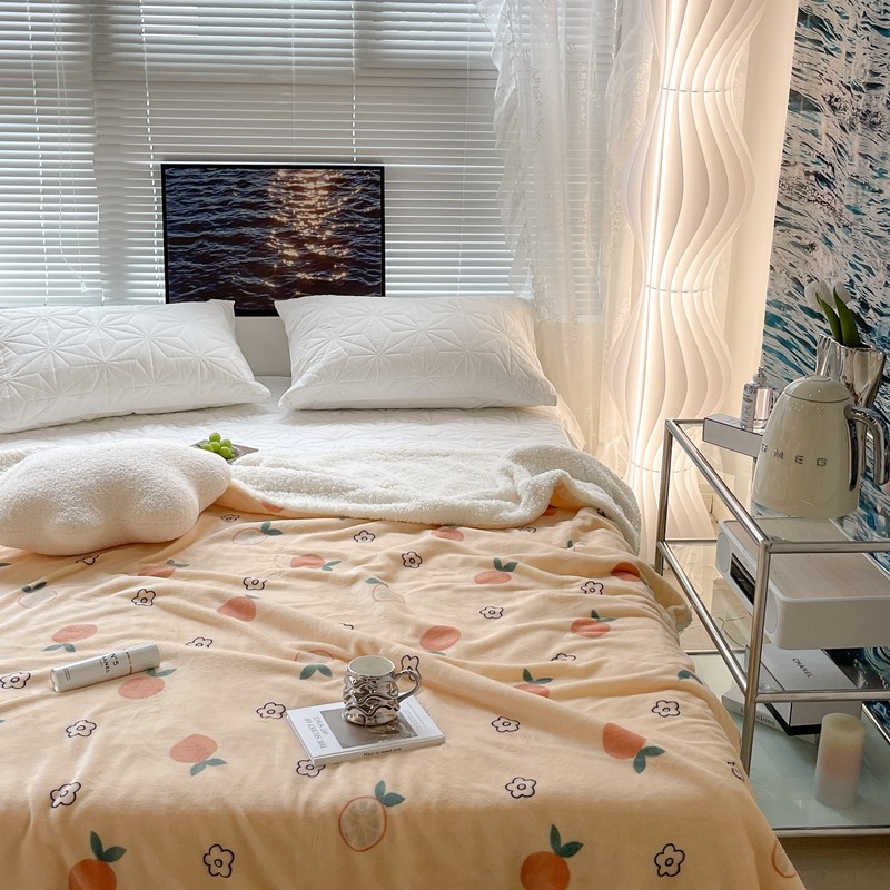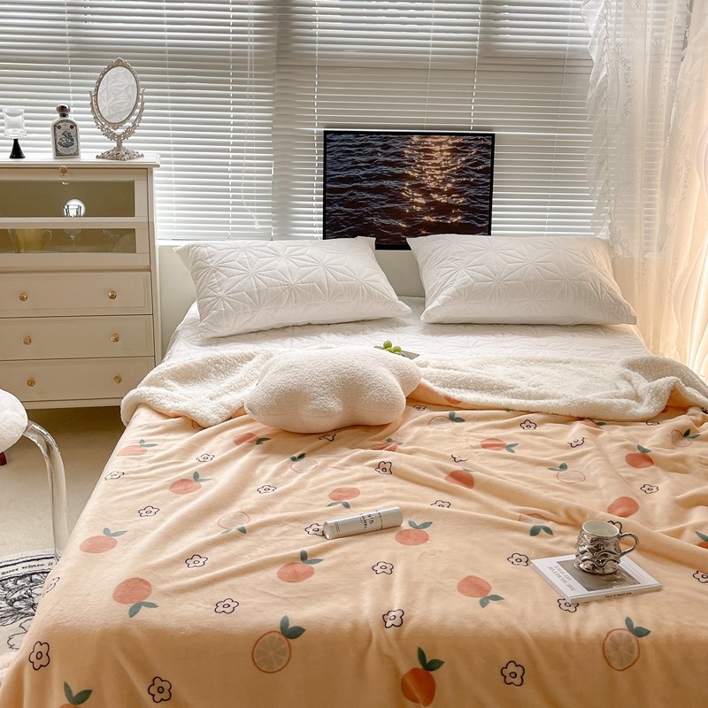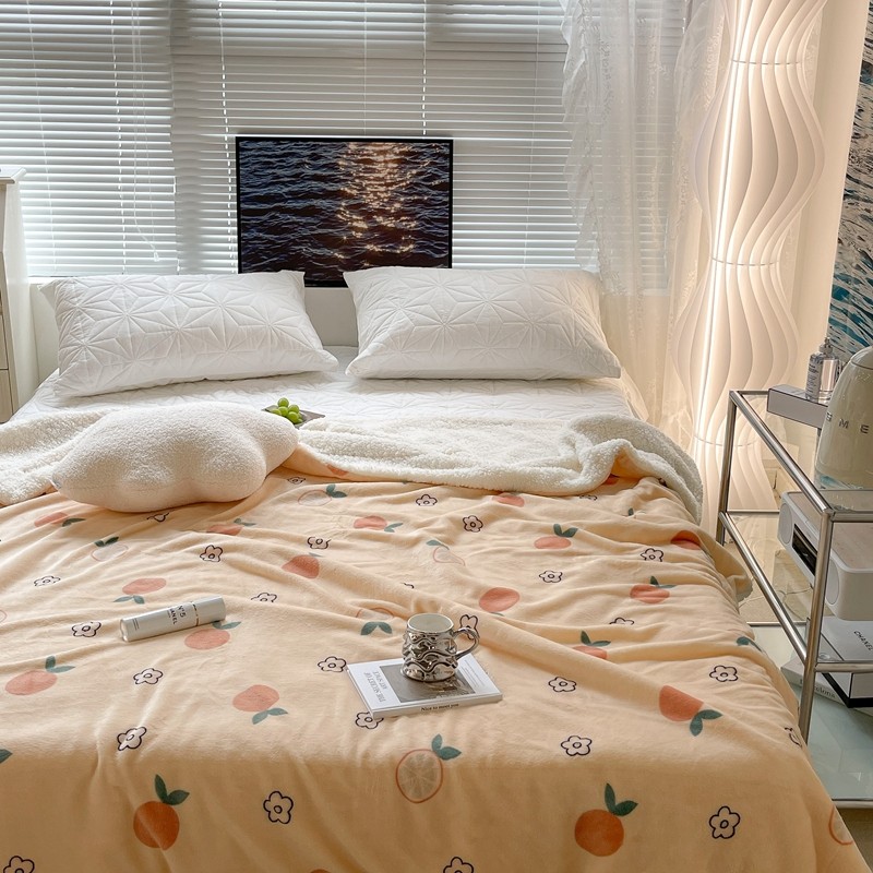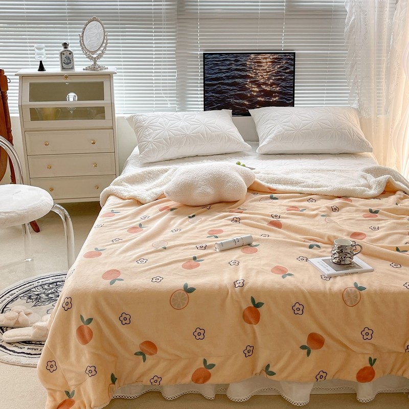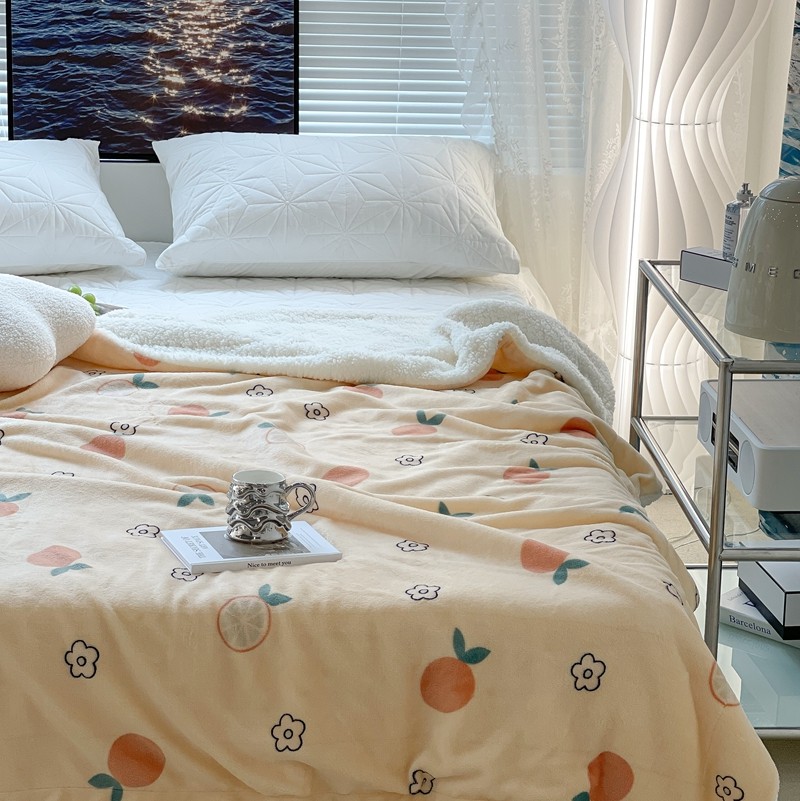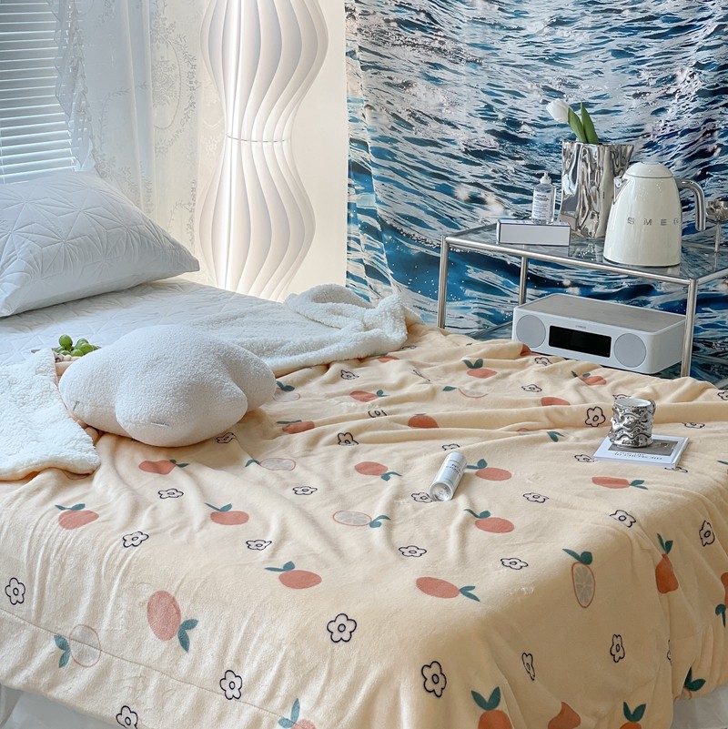 昔可家纺 2021新款牛奶羊羔绒印花毯 花朵橙