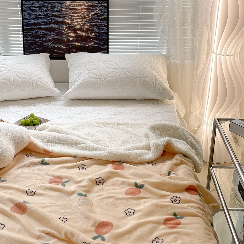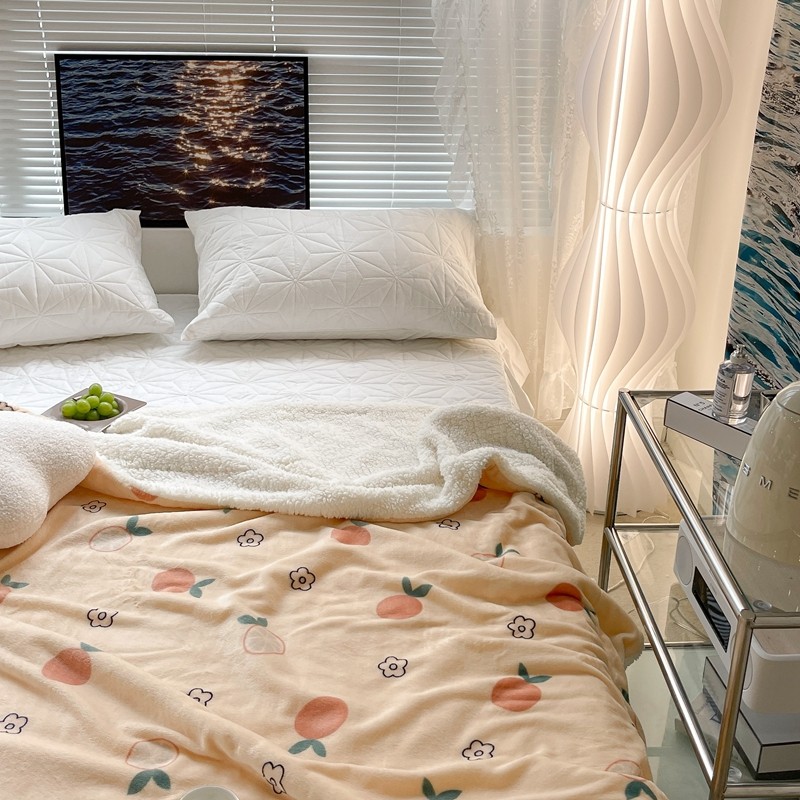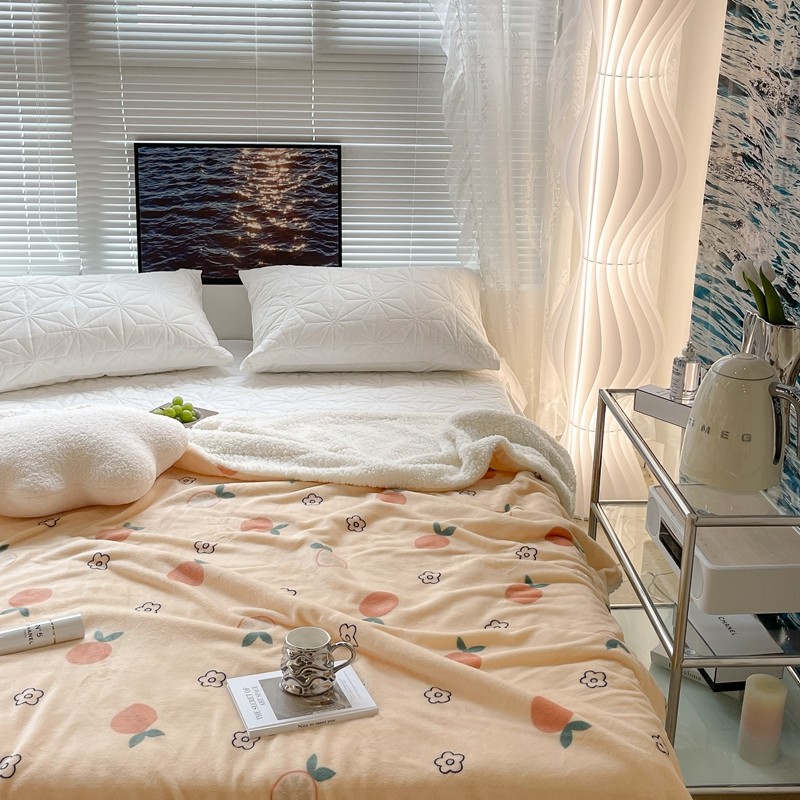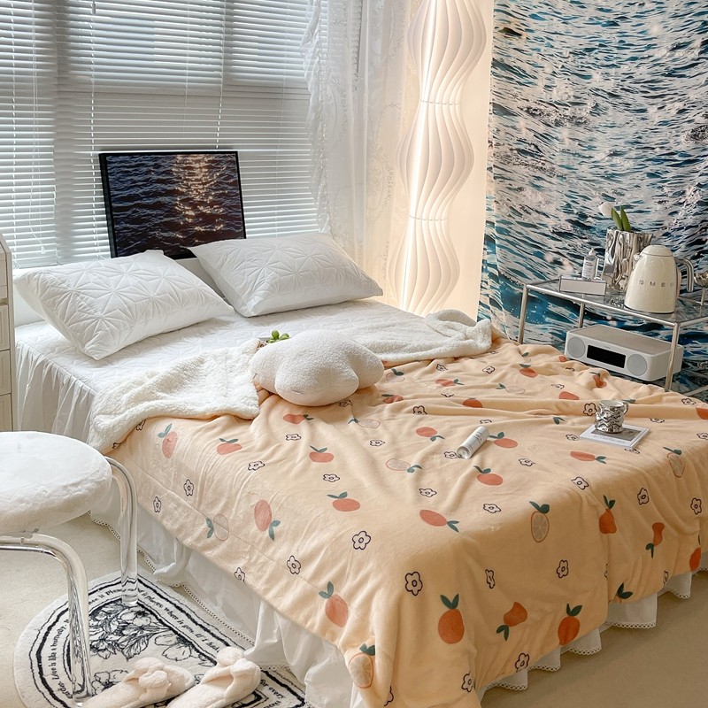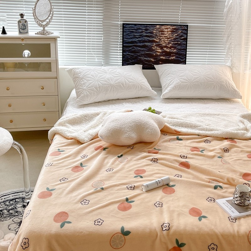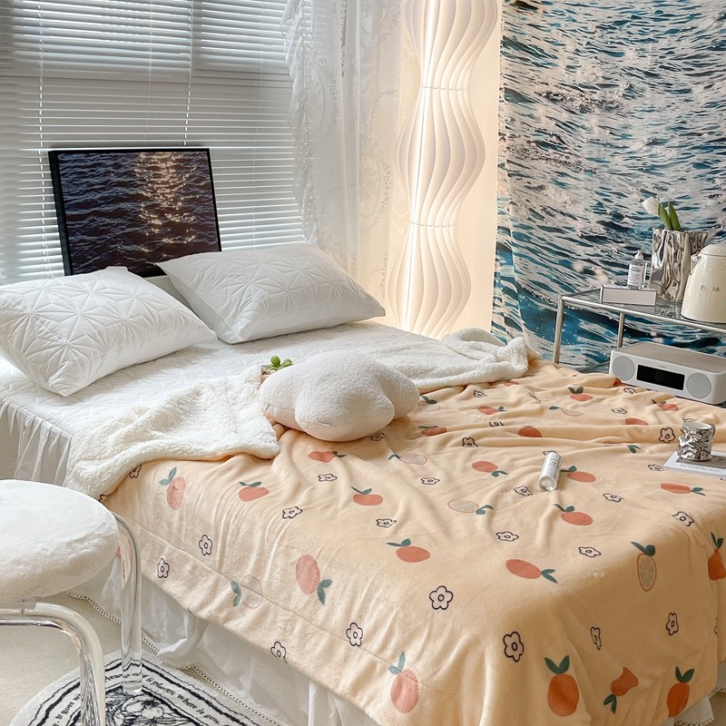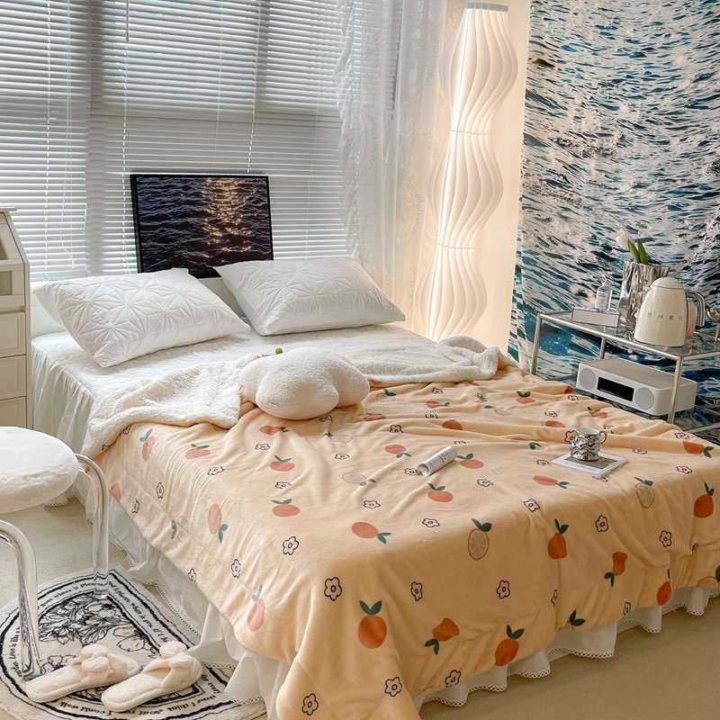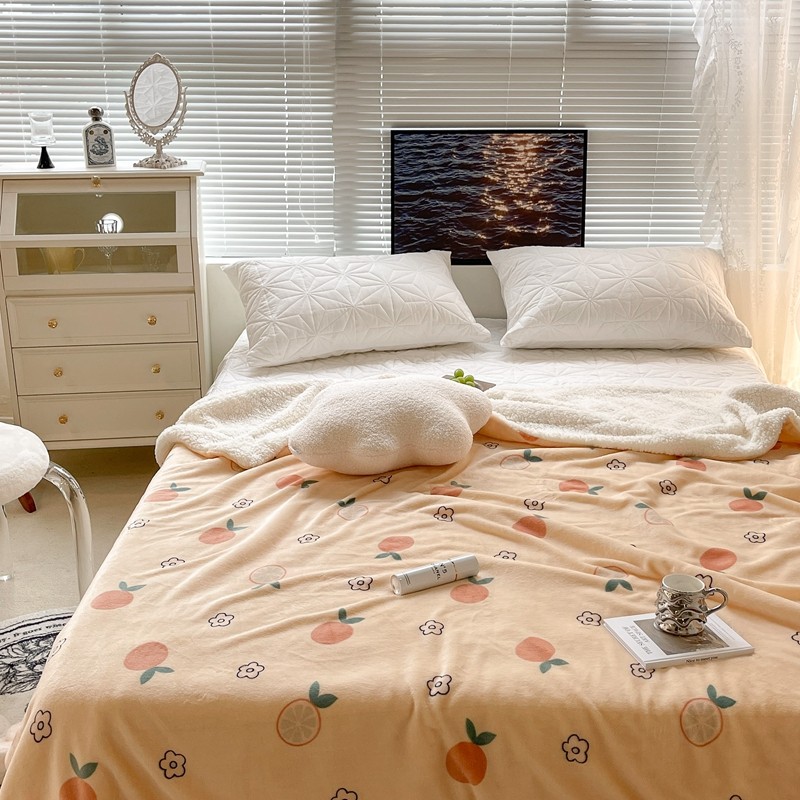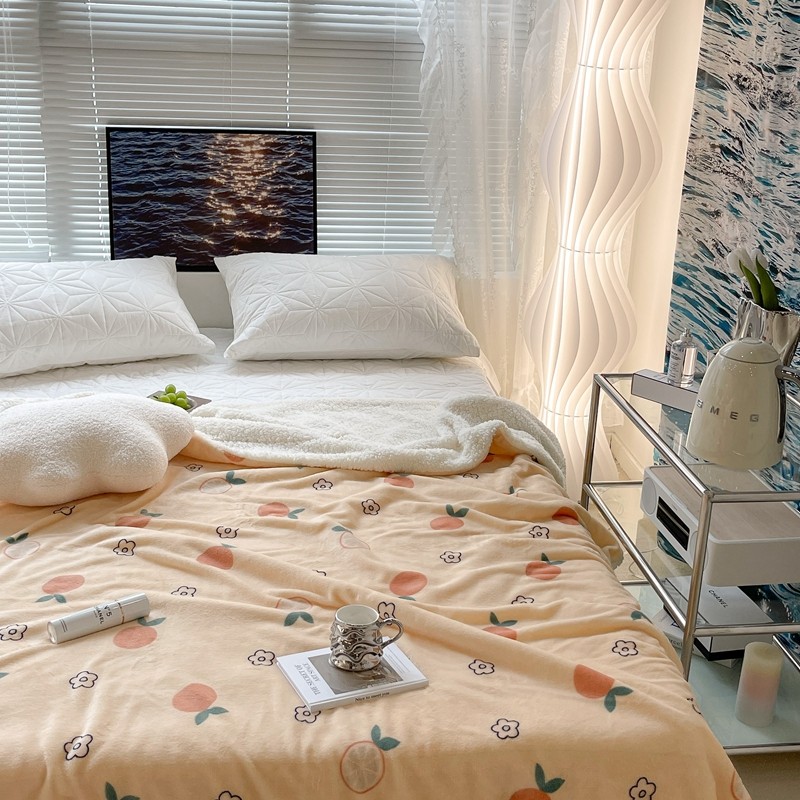 昔可家纺 2021新款牛奶羊羔绒印花毯 花朵橙