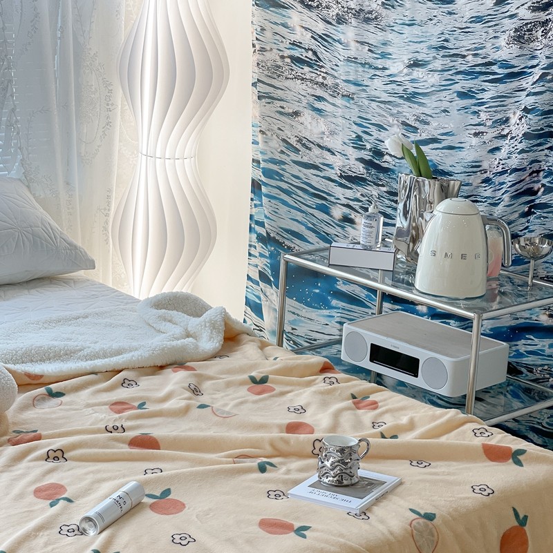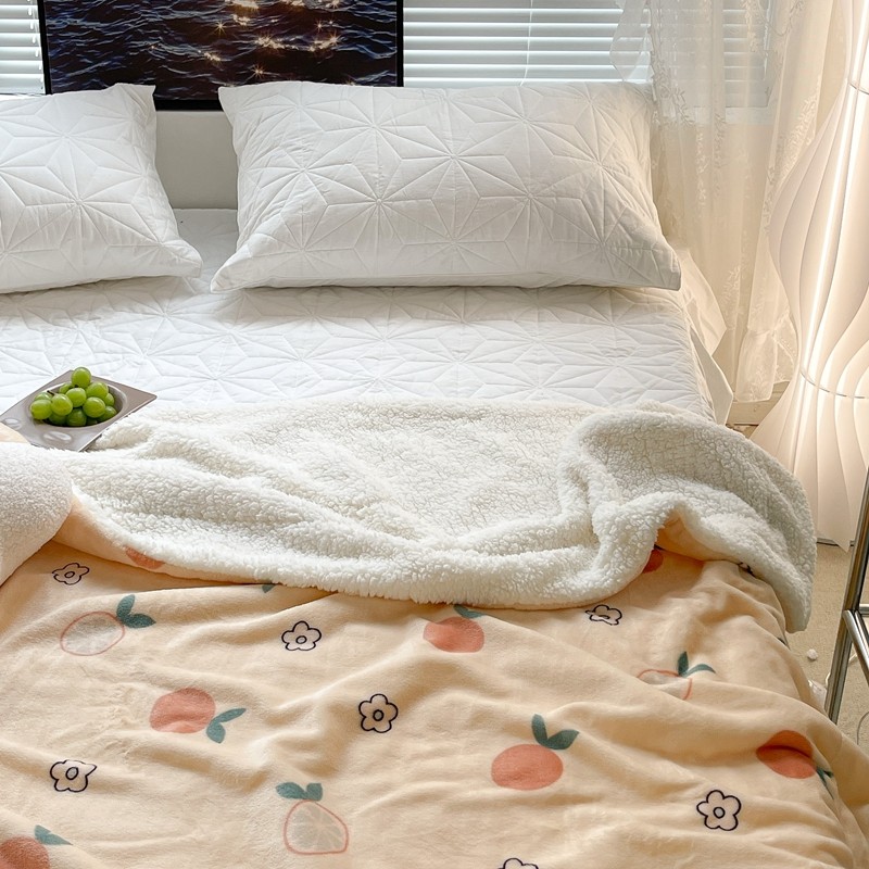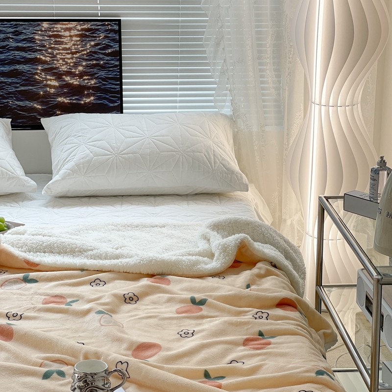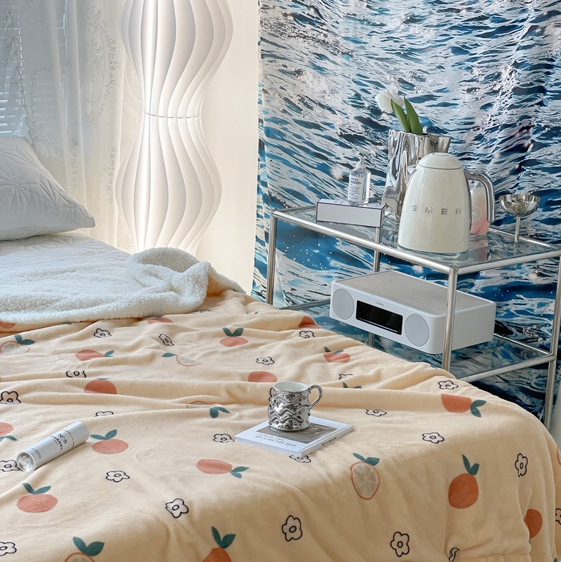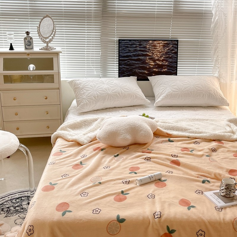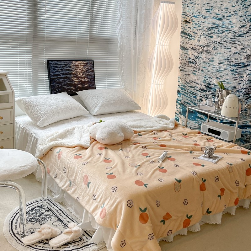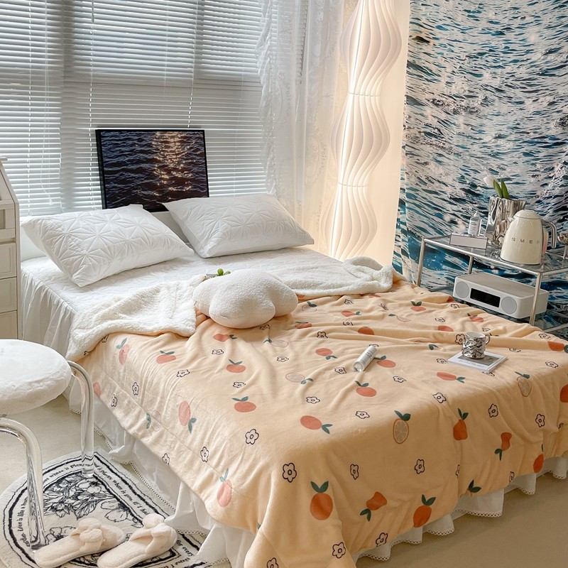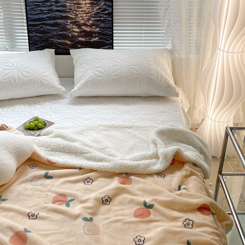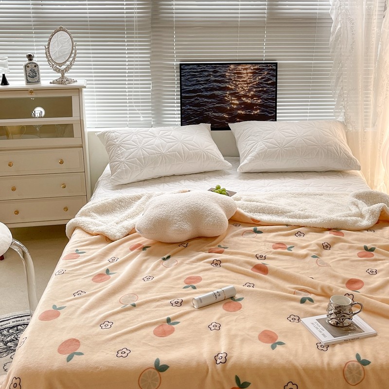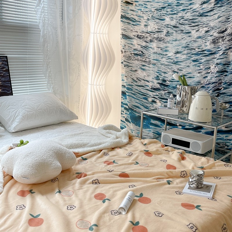 昔可家纺 2021新款牛奶羊羔绒印花毯 花朵橙