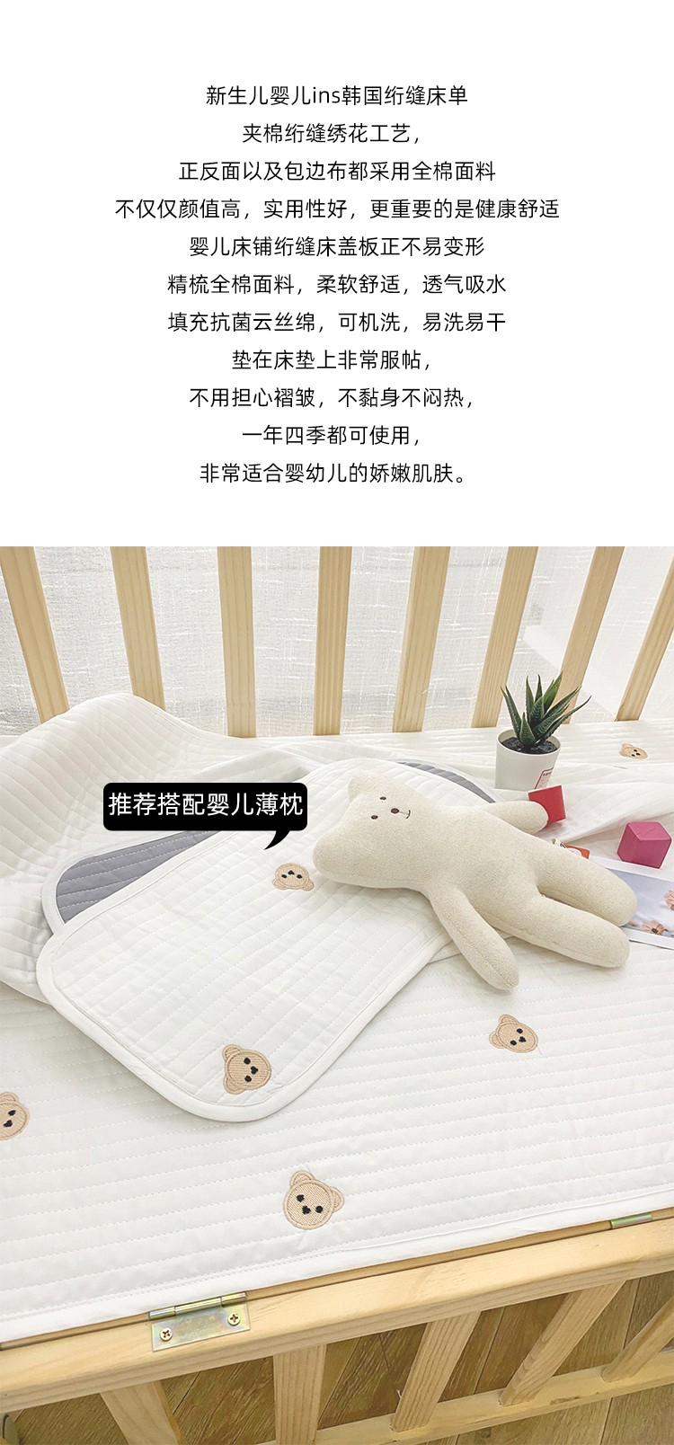期遇家居 2021新款婴儿床全棉绗绣床盖 爱心