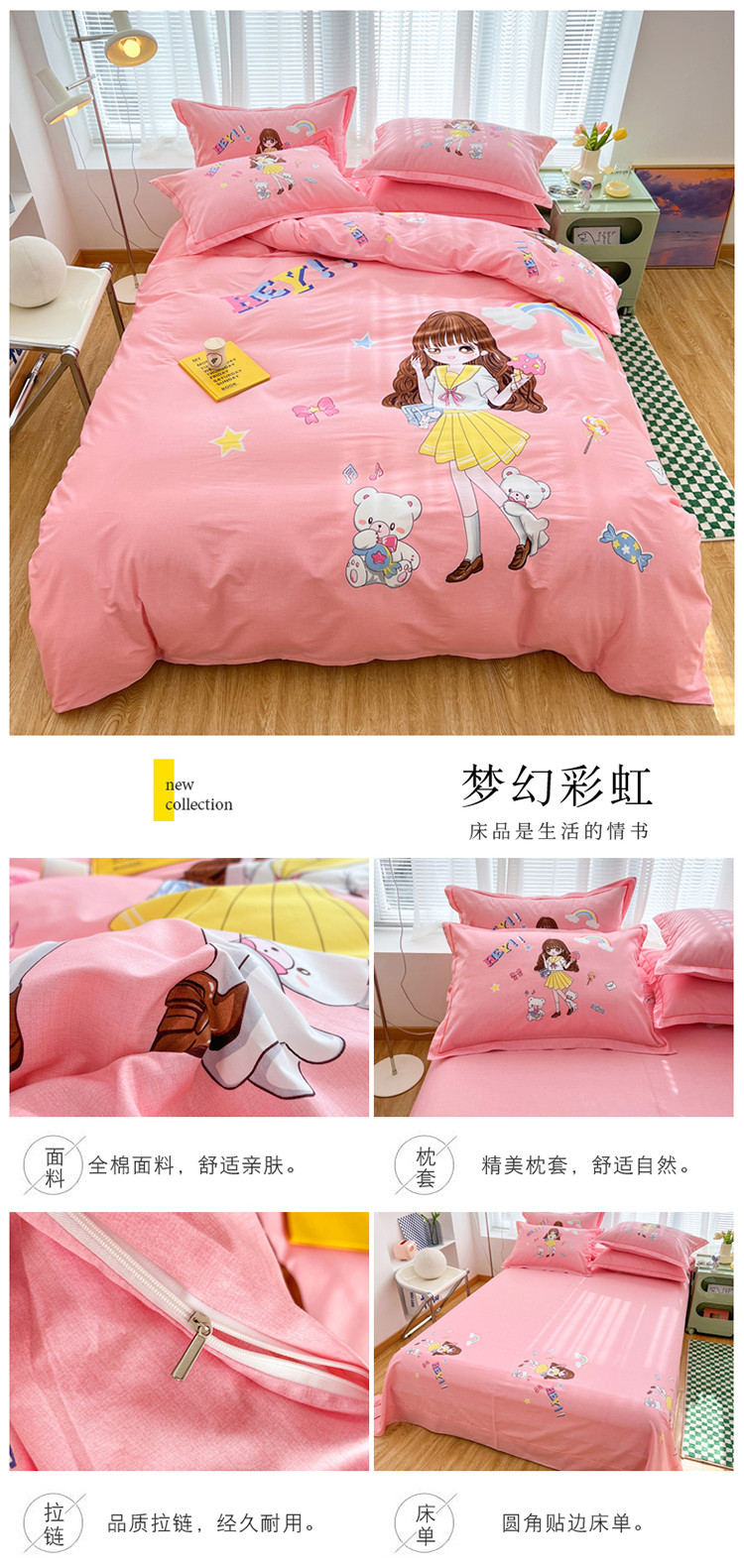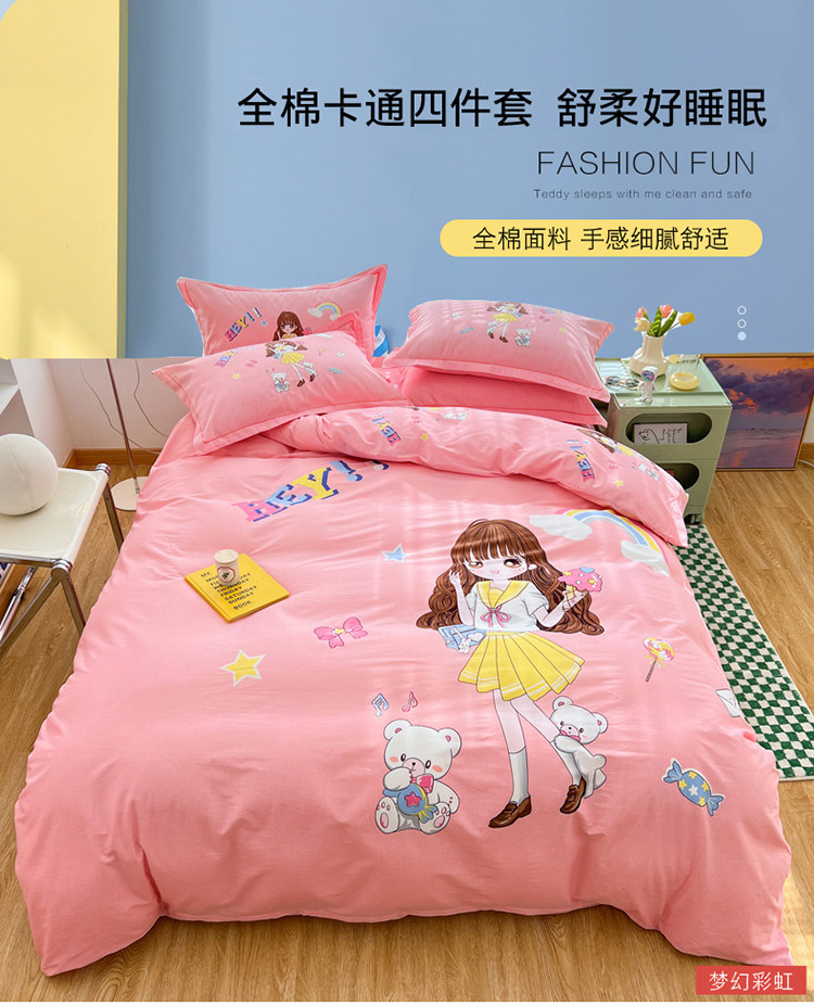 当前位置: 91家纺网 > 商品网购 > 床品套件 > 四件套 > 全棉普通四件套 > 金爱家 2023新款大版纯棉卡通四件套 梦幻彩虹