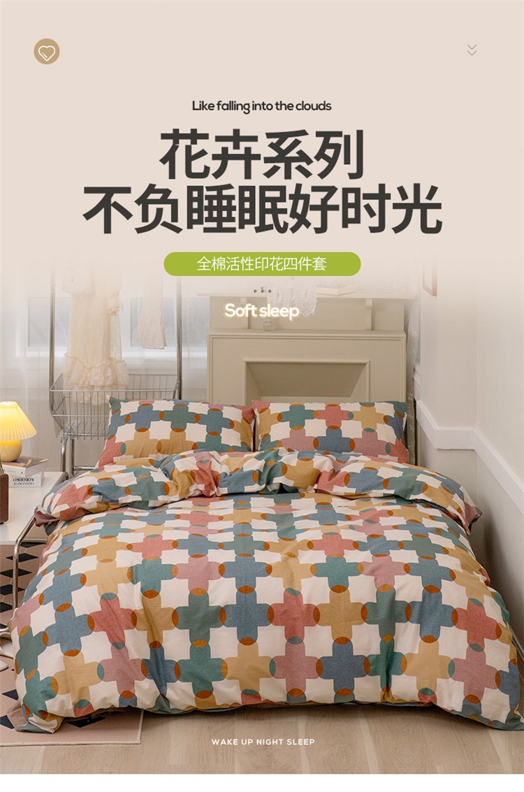 窝米 2022新款全棉印花活性四件套花卉系列 莫妮卡