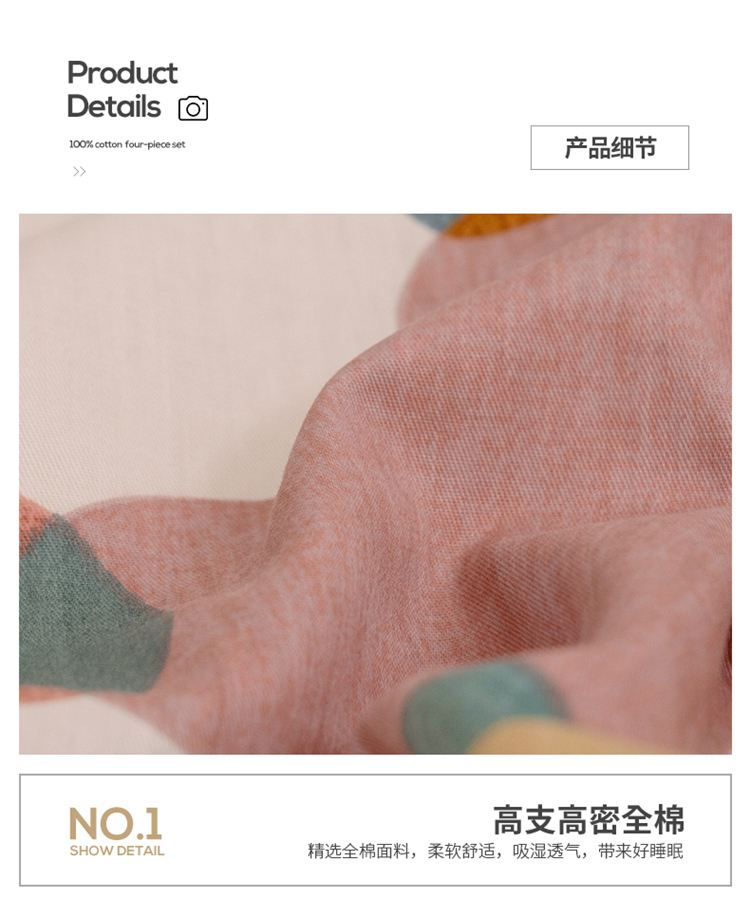(总)窝米 2025新款数码印花100支长绒棉纯棉工艺花边款四件套-晚意,晚意