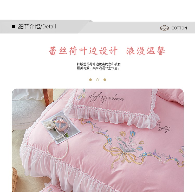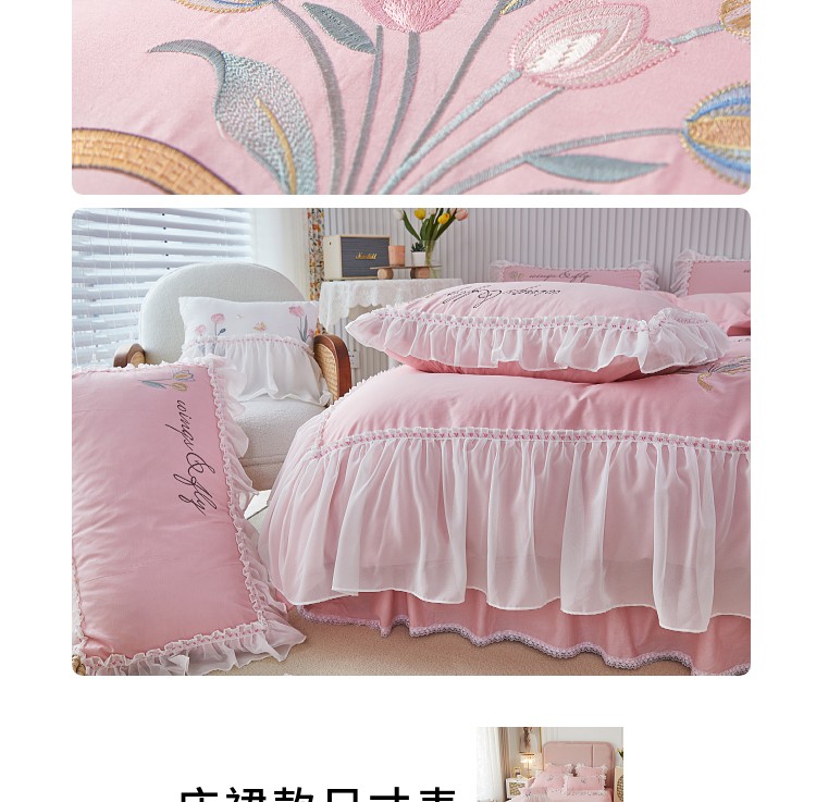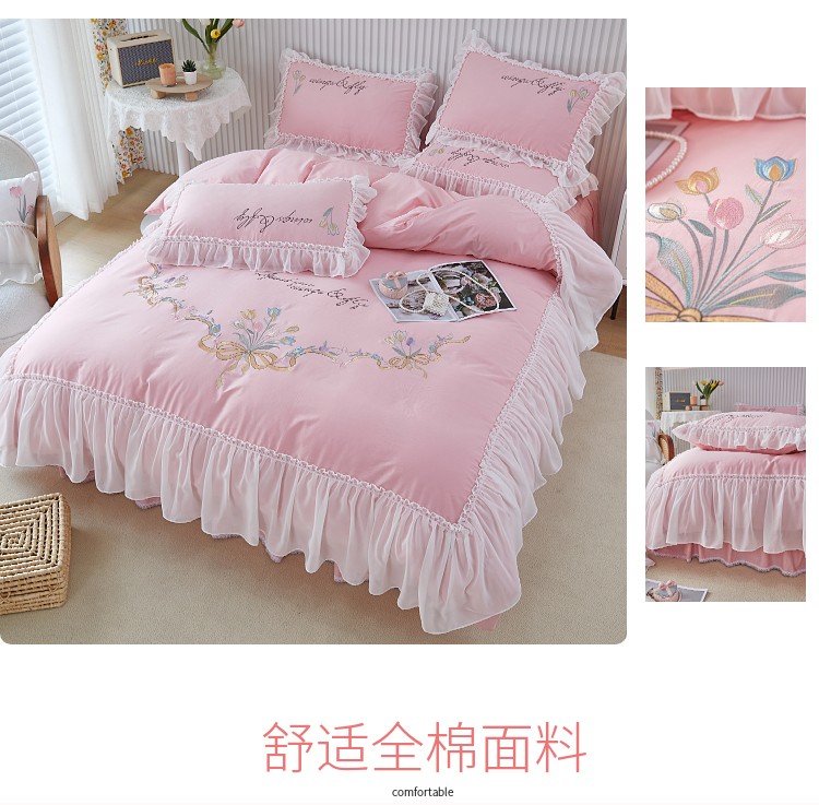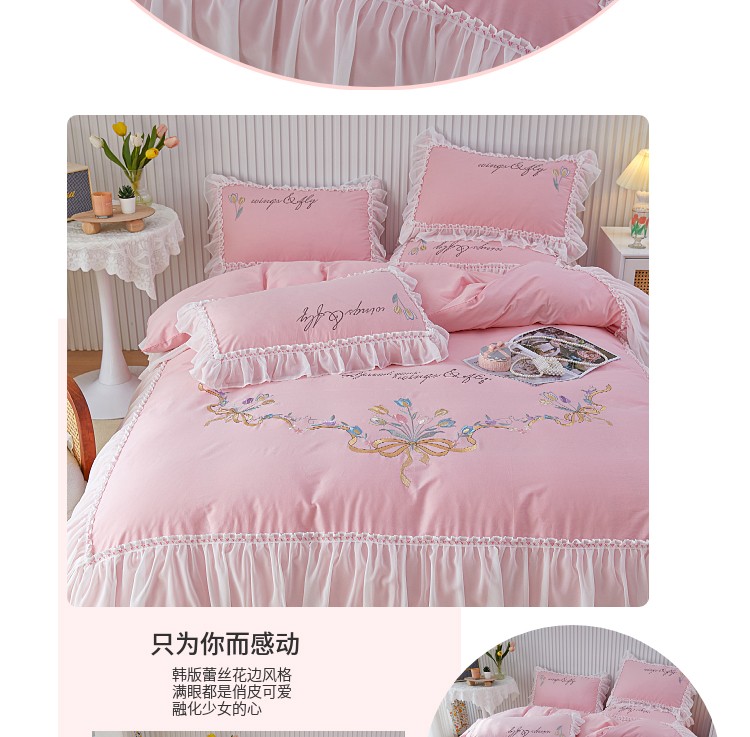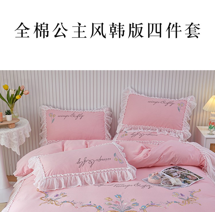 (总)亲亲公主 2025新款全棉法式宽花边四件套-浅浅爱,浅浅爱