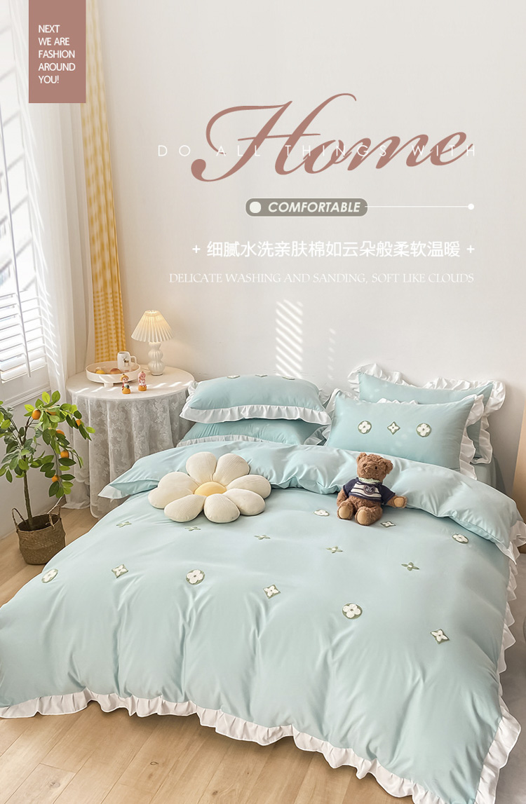 当前位置: 91家纺网 > 商品网购 > 床品套件 > 四件套 > 水洗棉四件套 > 易禾 2022新款小清新水洗亲肤棉四件套 雅典-绿