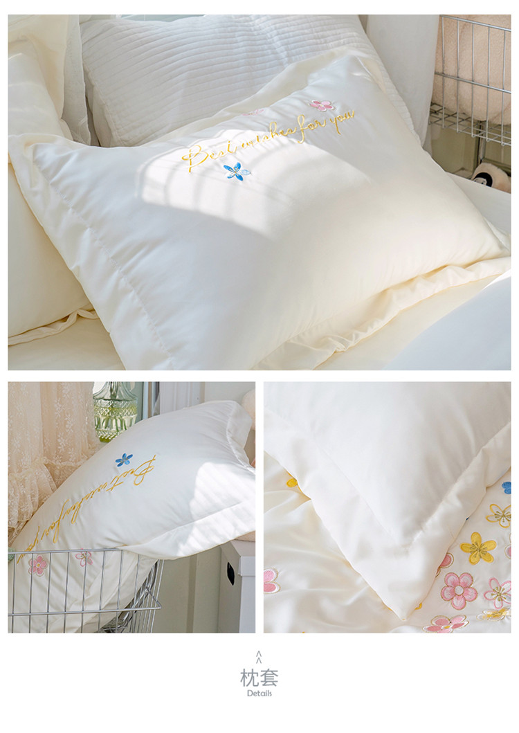总北纬27度 2022法式双层花边全棉夹棉床裙四件套直播爆款,高级白,公主粉,海洋蓝,可爱黄