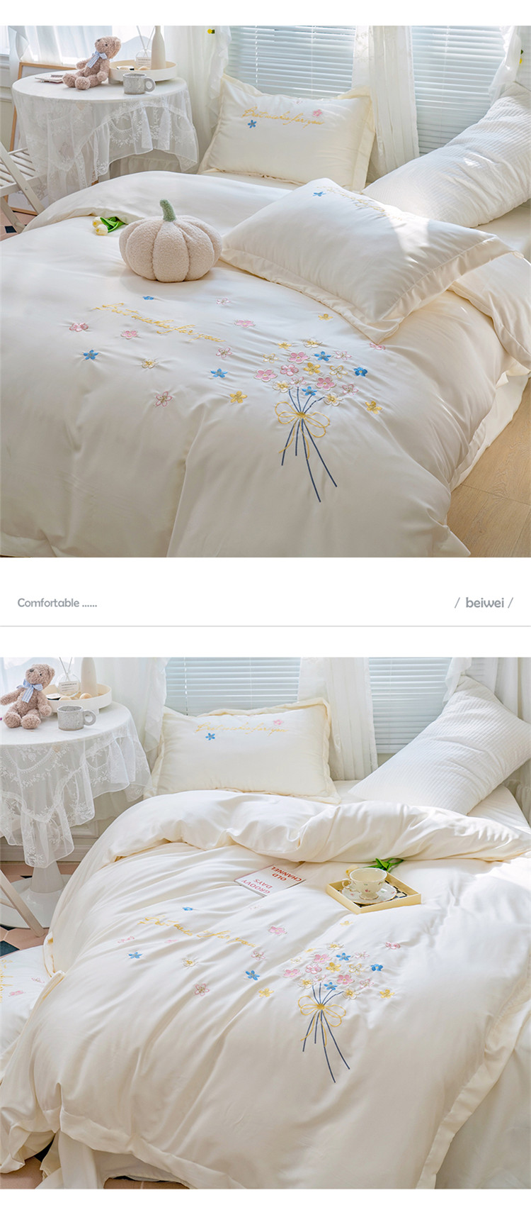(总)北纬27度 2025新款全棉长绒棉纯棉高定春款花边四件套-一笑倾城 风格二,一笑倾城-天蓝,一笑倾城-香槟金,一笑倾城-珠光粉