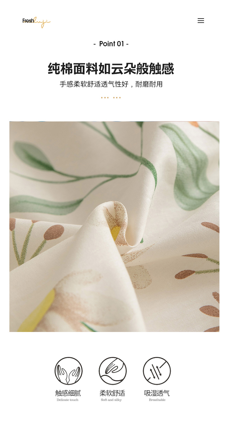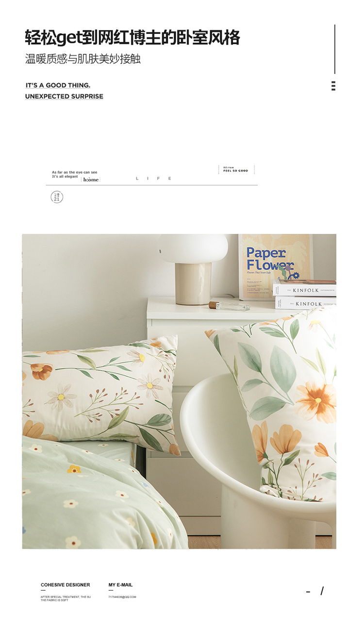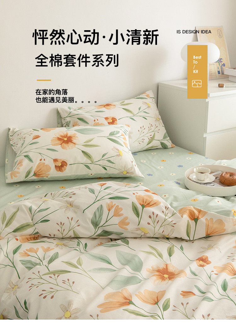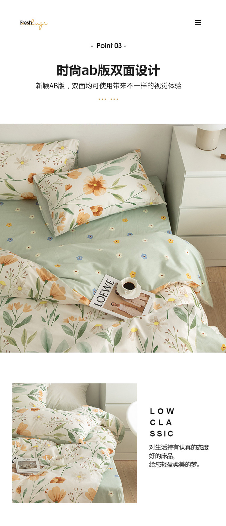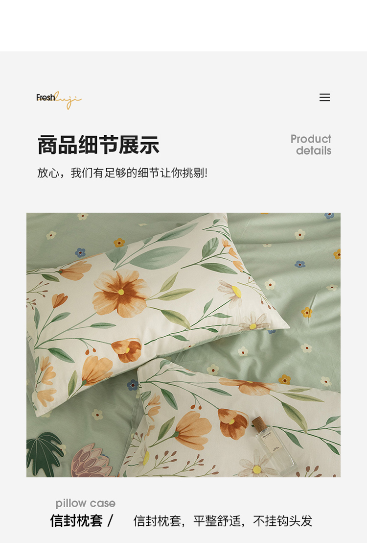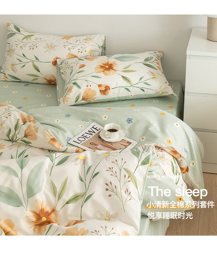 商品名称:绫韵 2022新款田园小清新全棉四件套春半梦花系列 夏烟