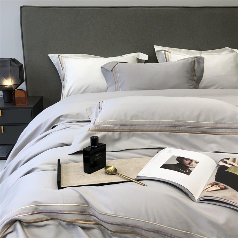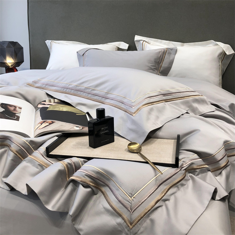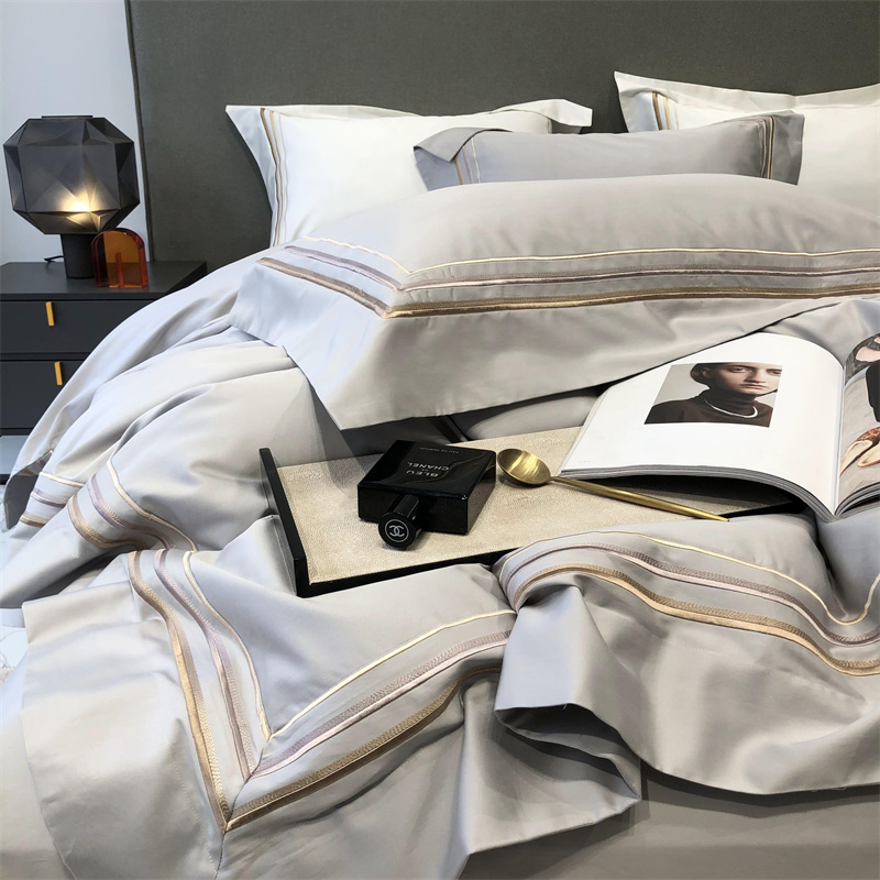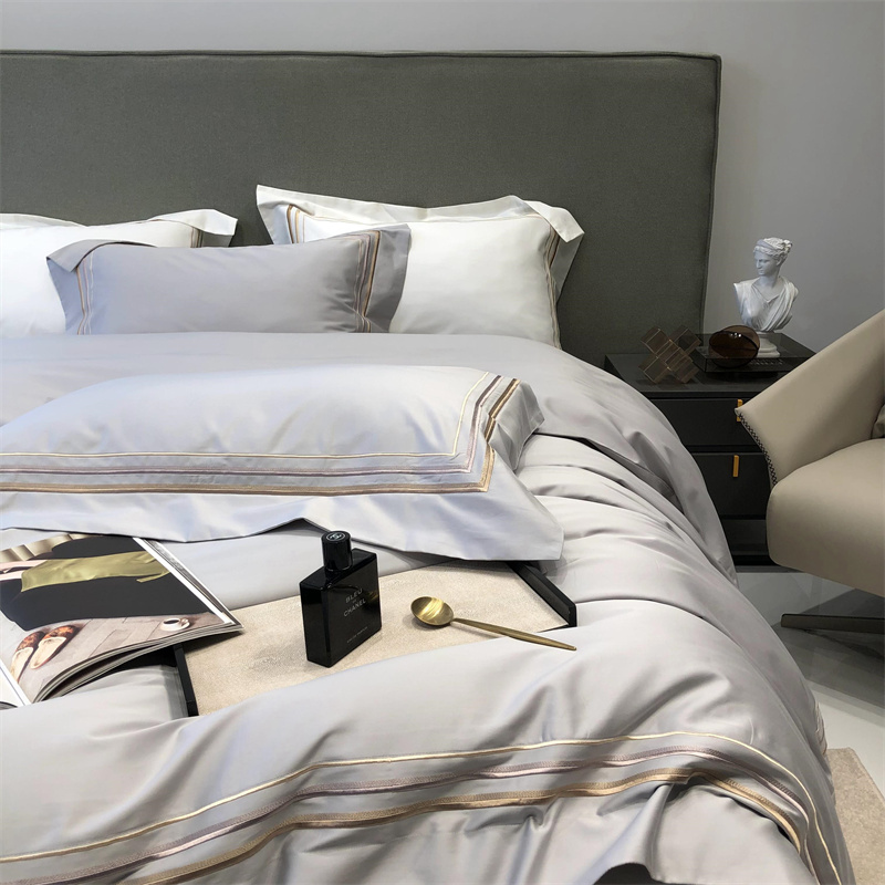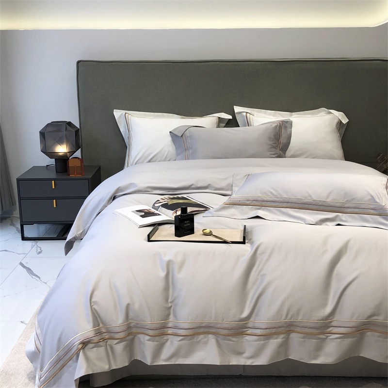 太古汇 2022新款全棉三线绣花四件套-缤纷浅灰