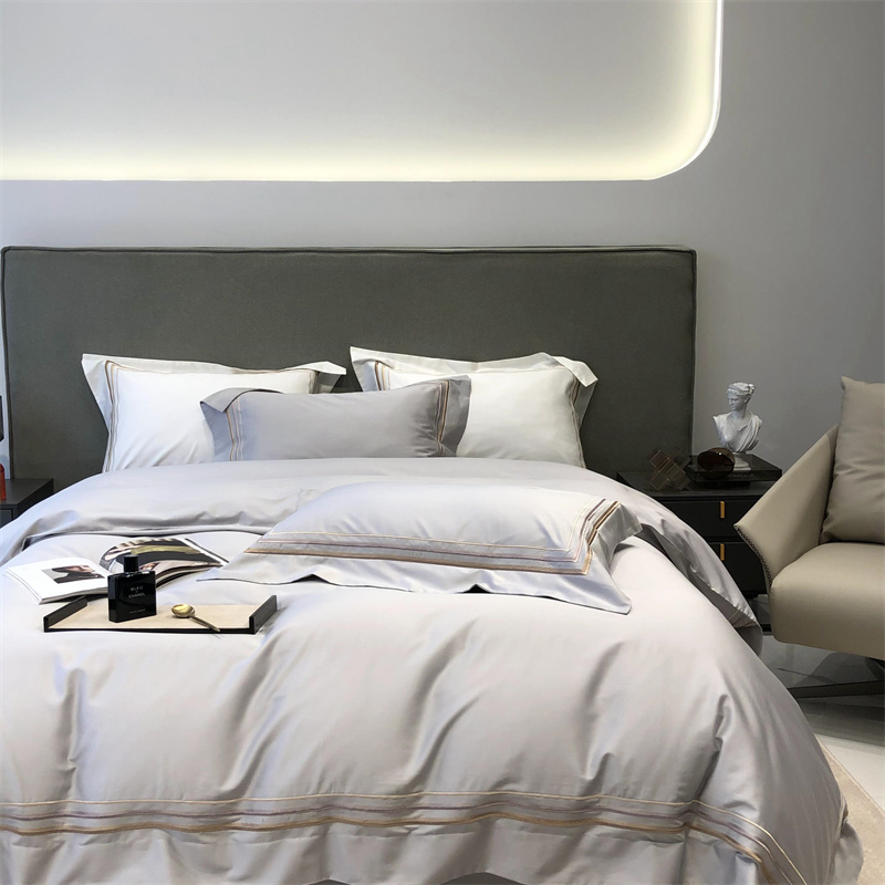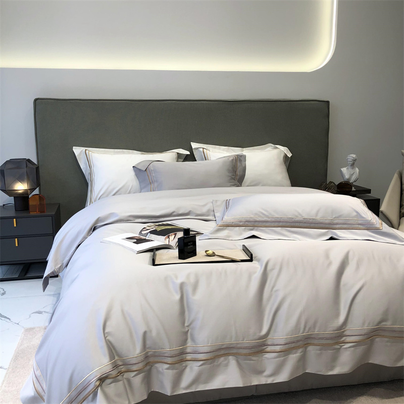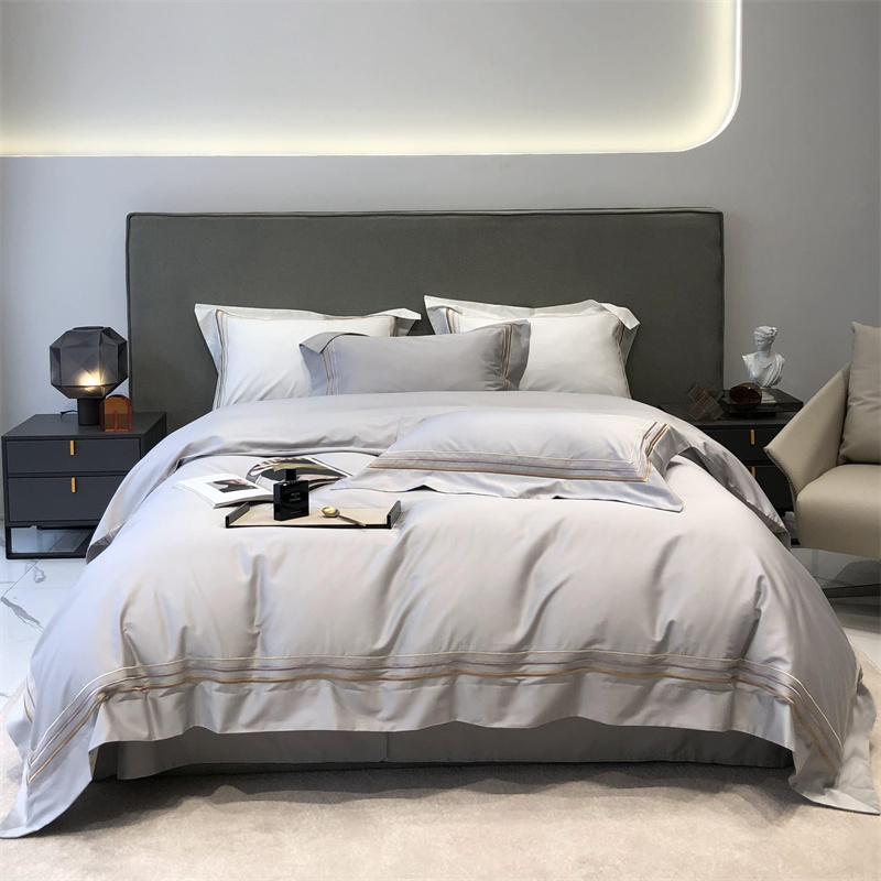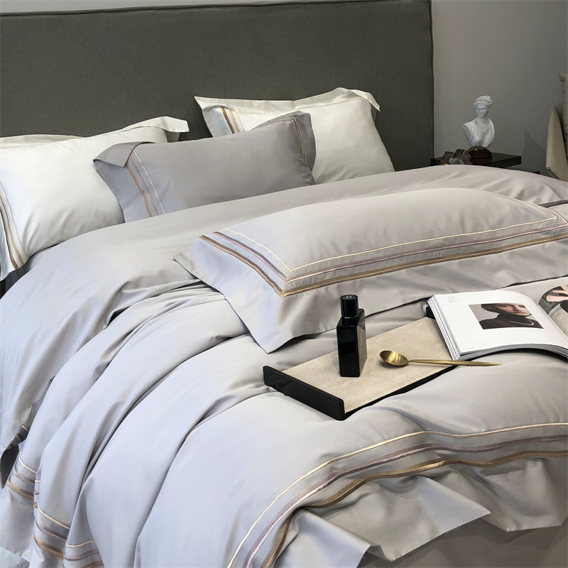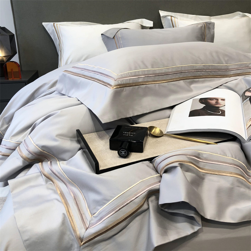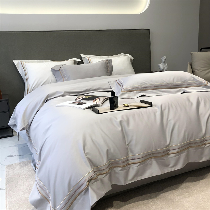 太古汇 2022新款全棉三线绣花四件套-缤纷浅灰