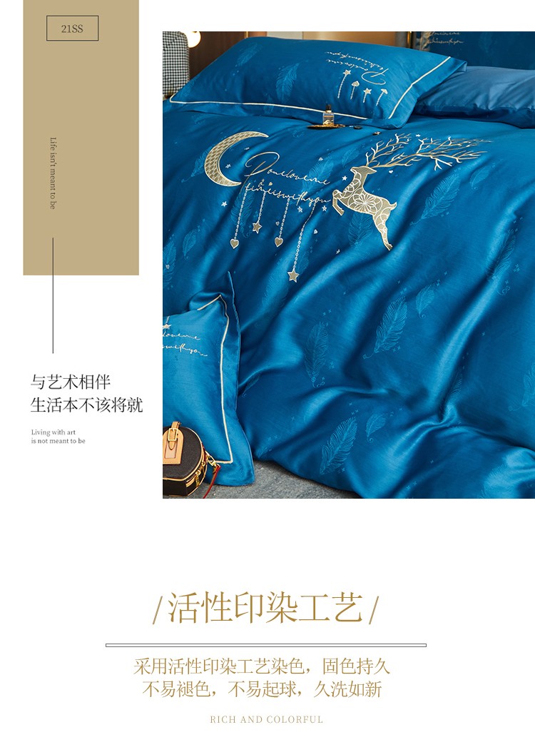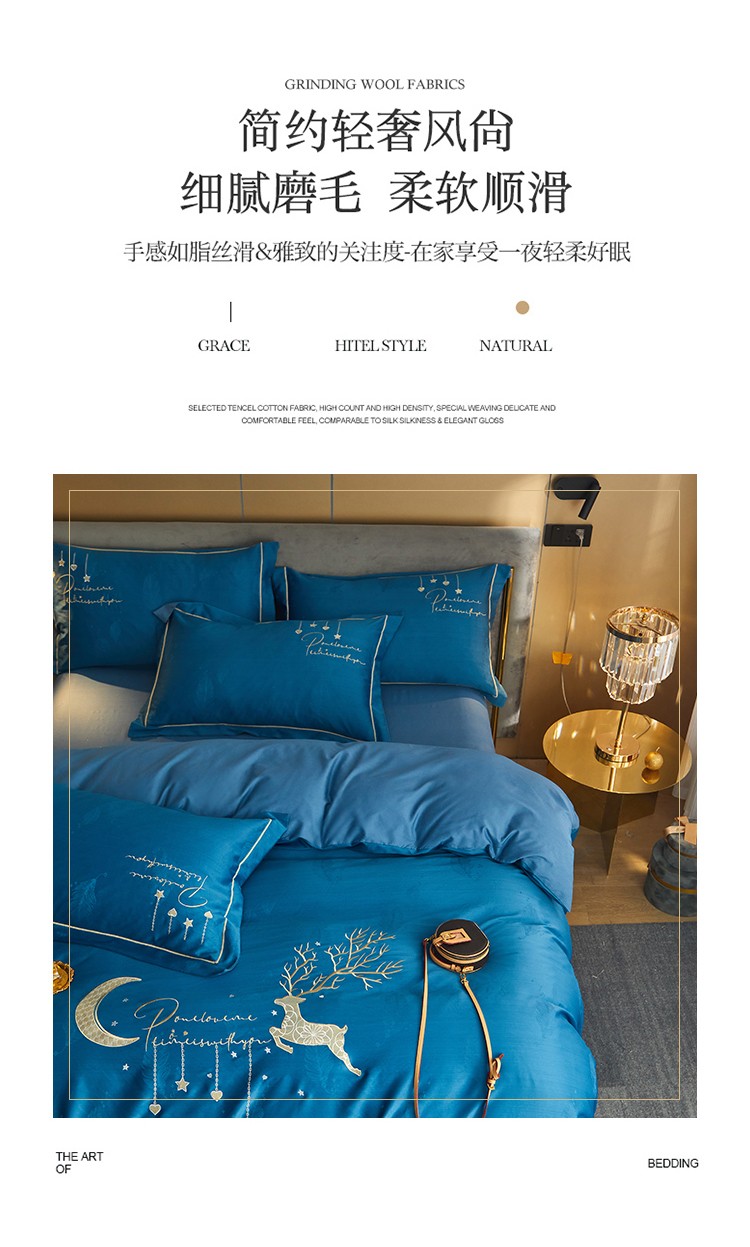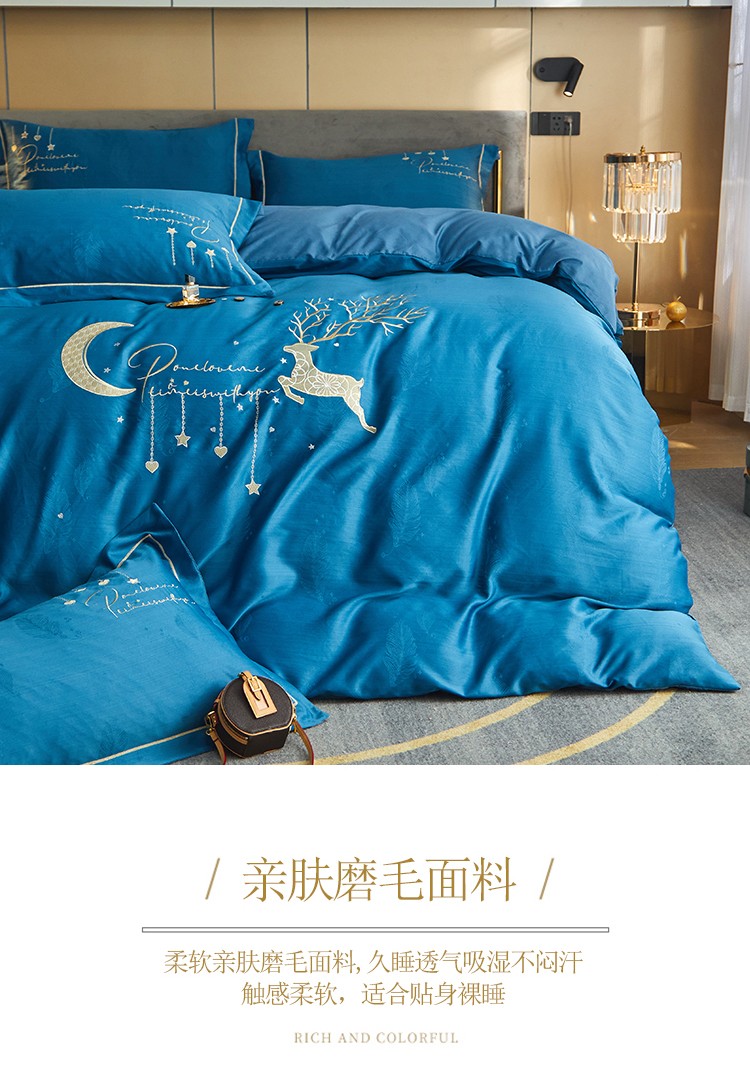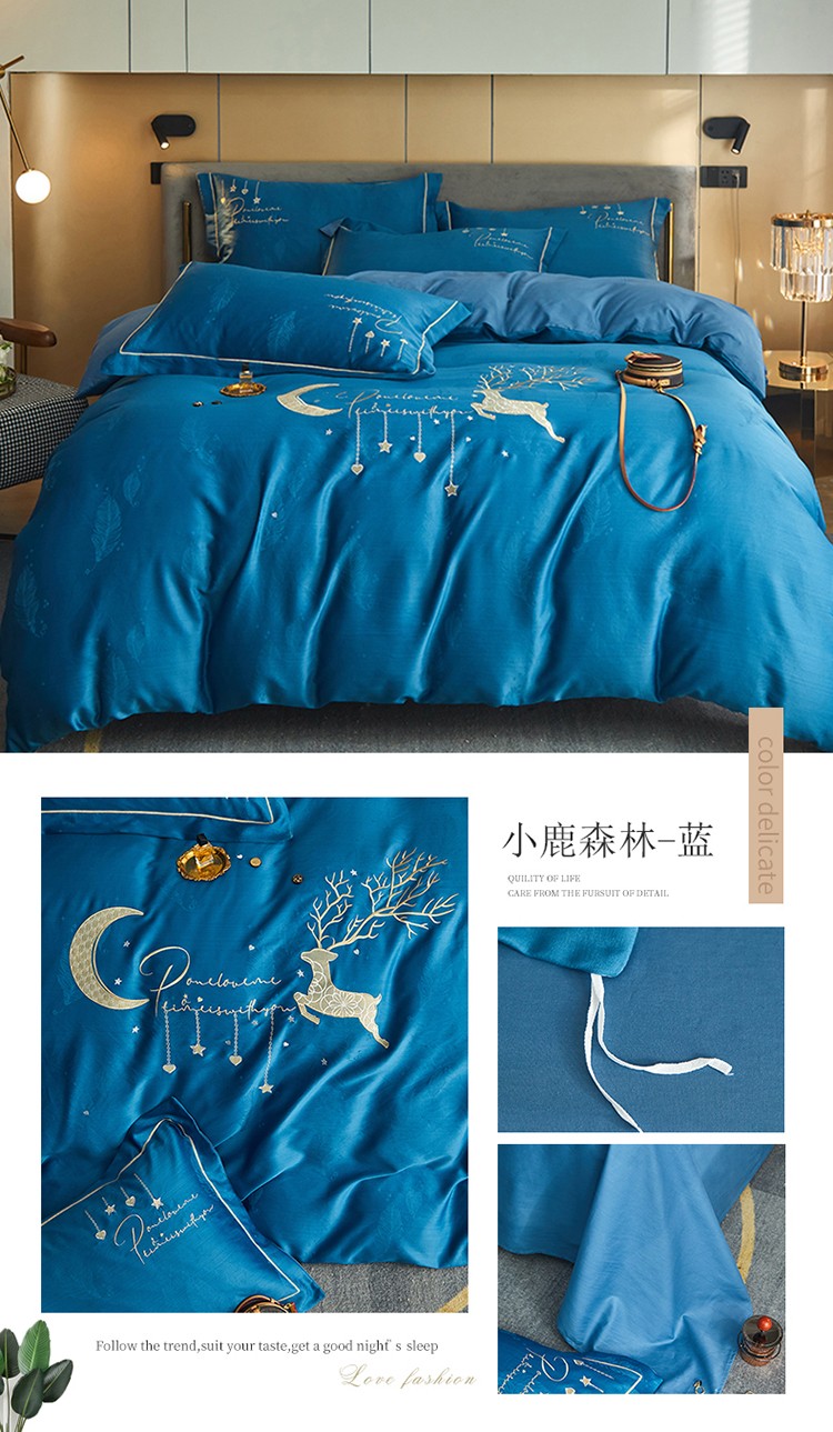 凡客 2022新款磨毛提花重工刺绣小鹿四件套 小鹿森林-蓝