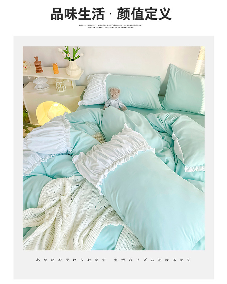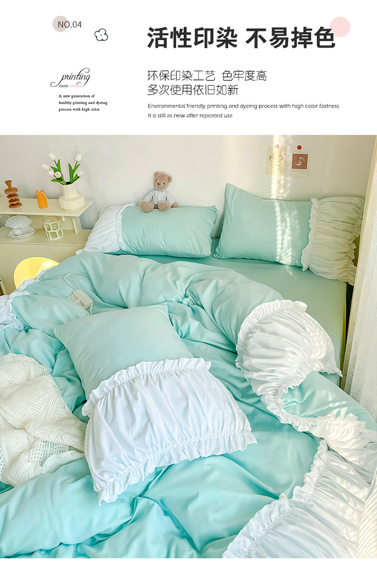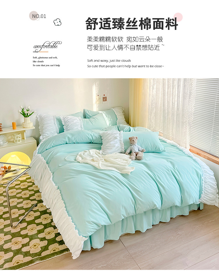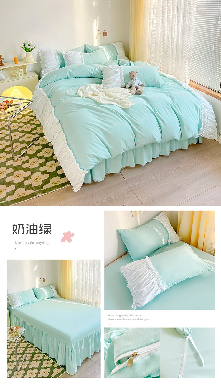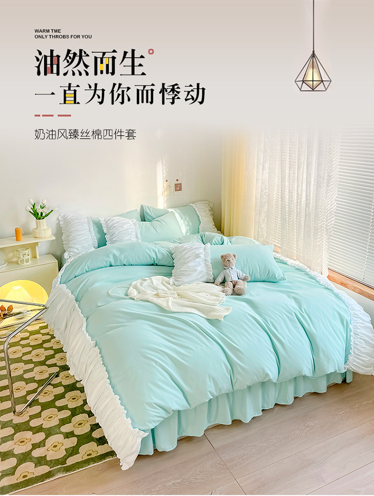 当前位置: 91家纺网 > 商品网购 > 床品套件 > 四件套 > 磨毛活性四件套 > 包小包2024新款韩版奶油ing风系列臻丝棉四件套 奶油绿